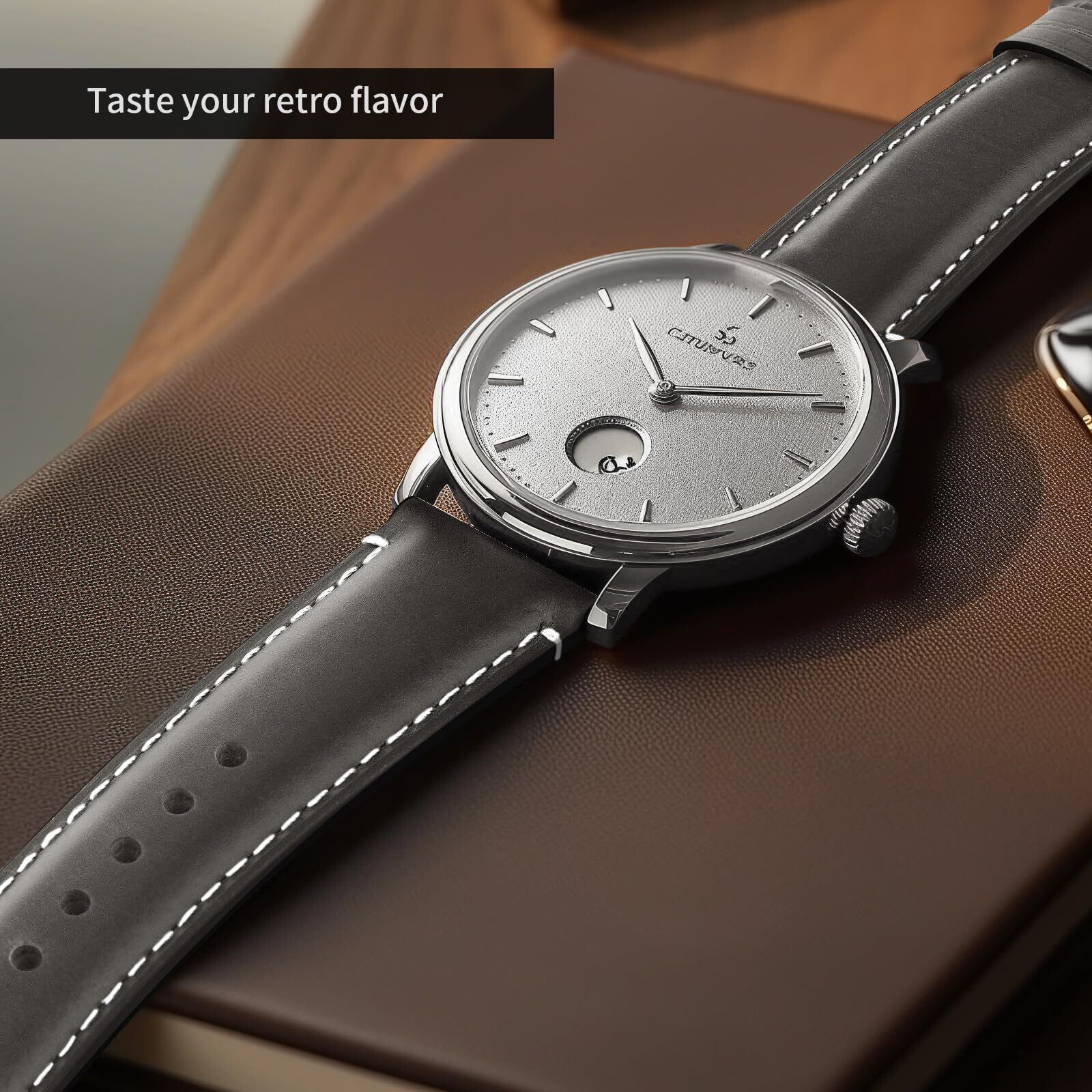 【上質な本革腕時計バンド】フルグレインレザーと理想的なコンフォート— 316ステンレス鋼のバックル。ポリッシュとブラッシングプロセスを組み合わせ、クラシックな外観を保ちます。処理された下側(ソフトカーフレザー)は肌に対して非常に柔らかく、滑りを最小限に抑えながら理想的な快適さを提供します。