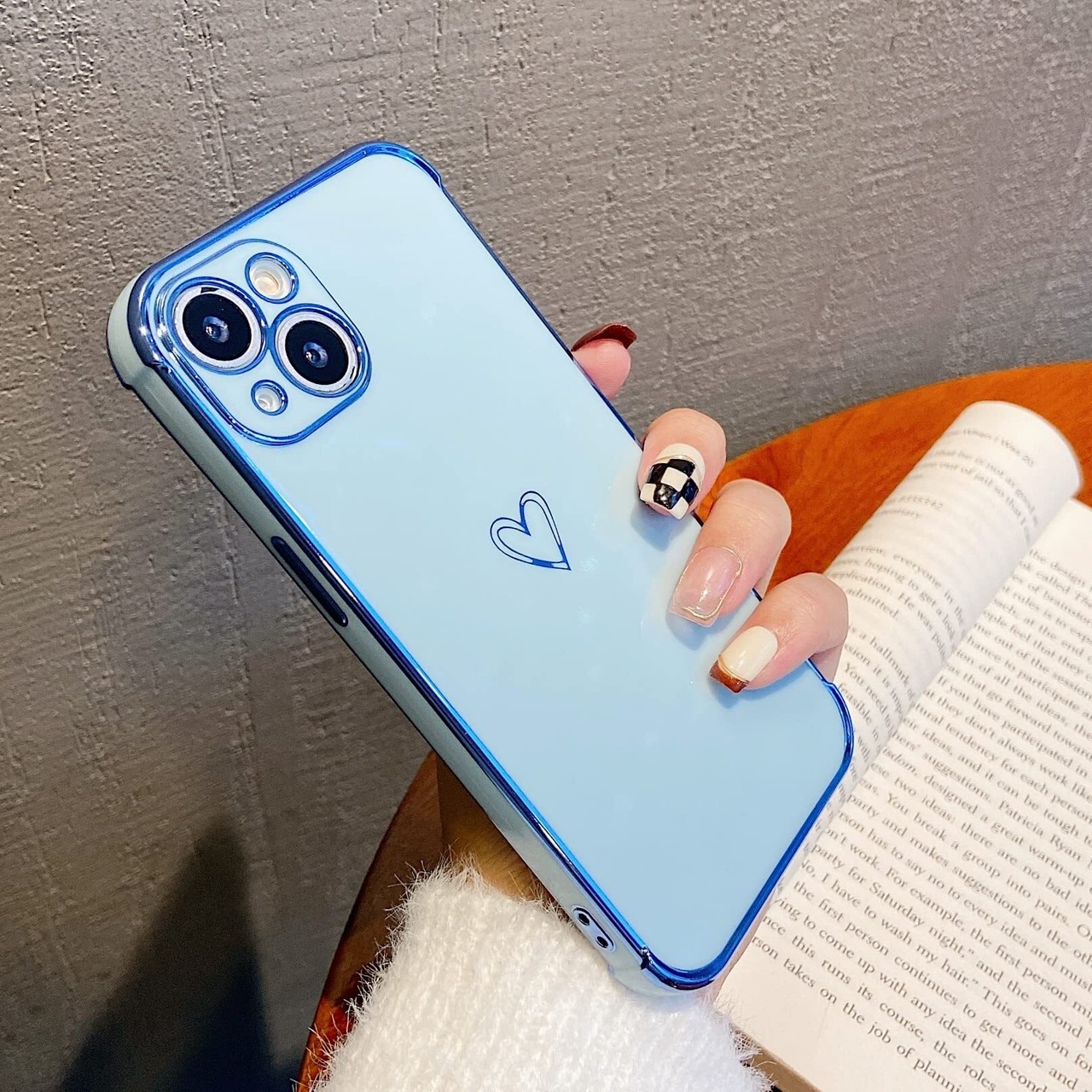 ZTOFERA iPhone 14 用 ハートケース iPhone 14 ケース 柔軟な TPU シリコン スマホケース メッキ加工 ソフト 軽量 耐衝撃 おしゃれ 韓国 可愛い アイフォン 14 ケース 女子 女性 心パターン 携帯電話カバー ワイヤレス充電対応 (シエラブルー)