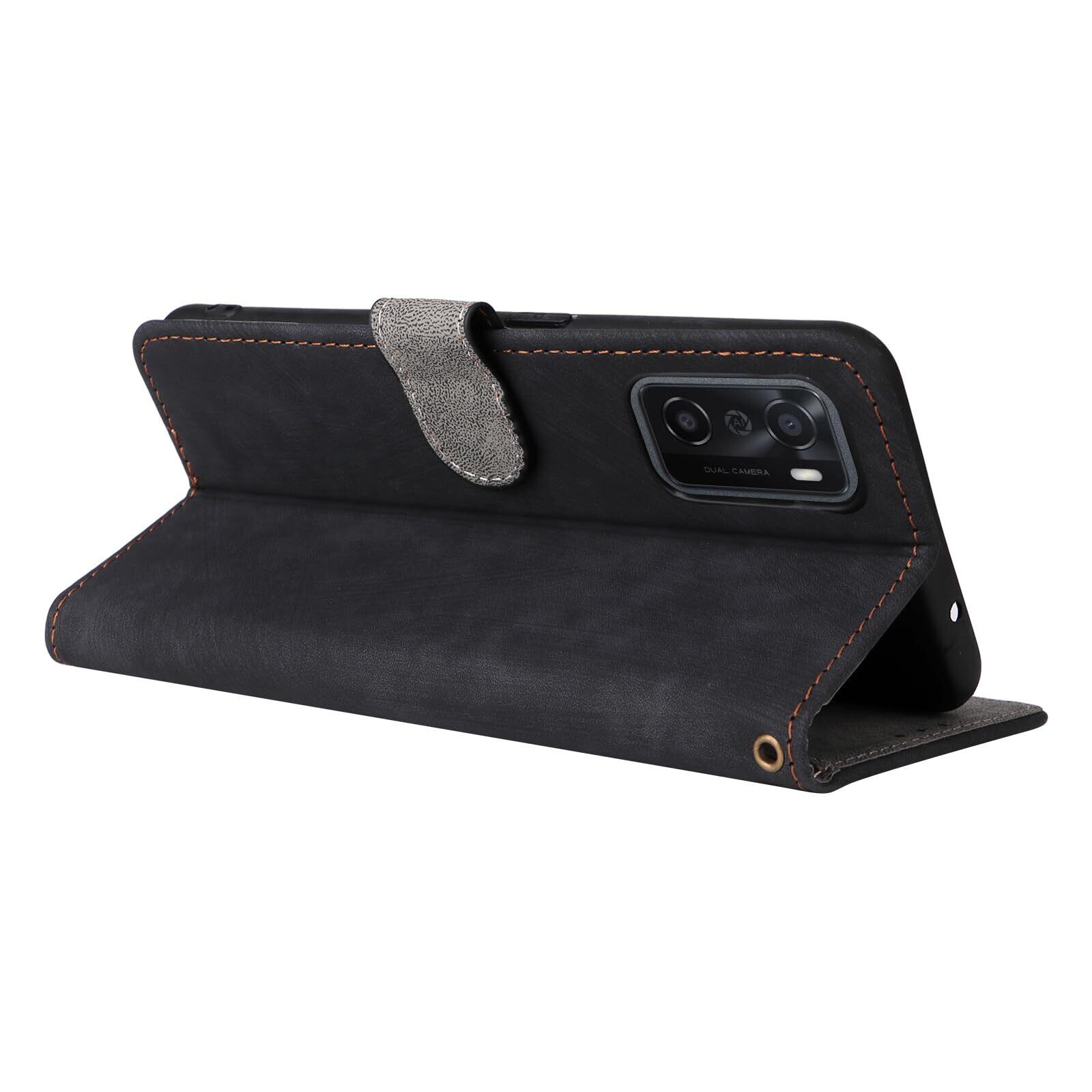 OPPO A55s 5G ケース 手帳型 カバー 財布型 高級PUレザー カード収納スタント機能/耐衝撃/耐摩擦/全面保護/薄型/マグネット開閉 防水 ノート型 人気 おしゃれ 男女兼用 OPPO A55s 5G ブラック