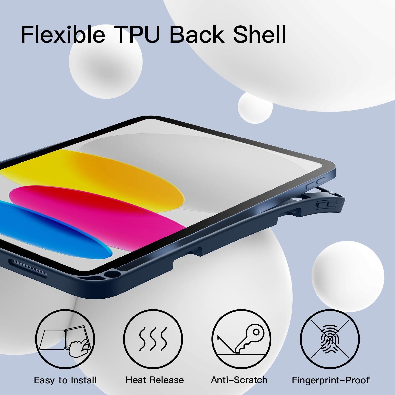 JETech iPad(A16)ケース 第11/10世代(2025/2022モデル)用Pencilホルダー付き 対応 ソフトTPUバック スリム保護カバー オートウェイクアップ/スリープ機能付き (ディープネイビー)