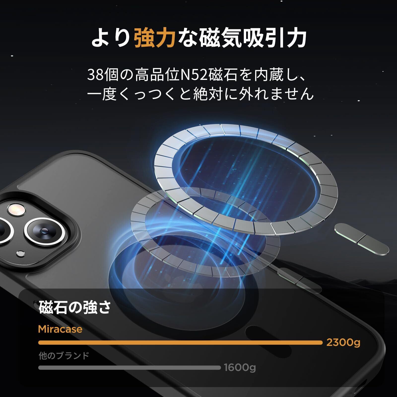 Miracase iphone15 ケース【Magsafe対応・米軍規格】iphone15ケース 6.1インチ【強化フィルム2枚付き】耐衝撃iphone 15 ケース、黄ばみ防止、傷防止、指紋防止、ストラップホール付き、薄くて肌に優しいデザイン、金属ボタン、マット、フロスト、半透明、黒