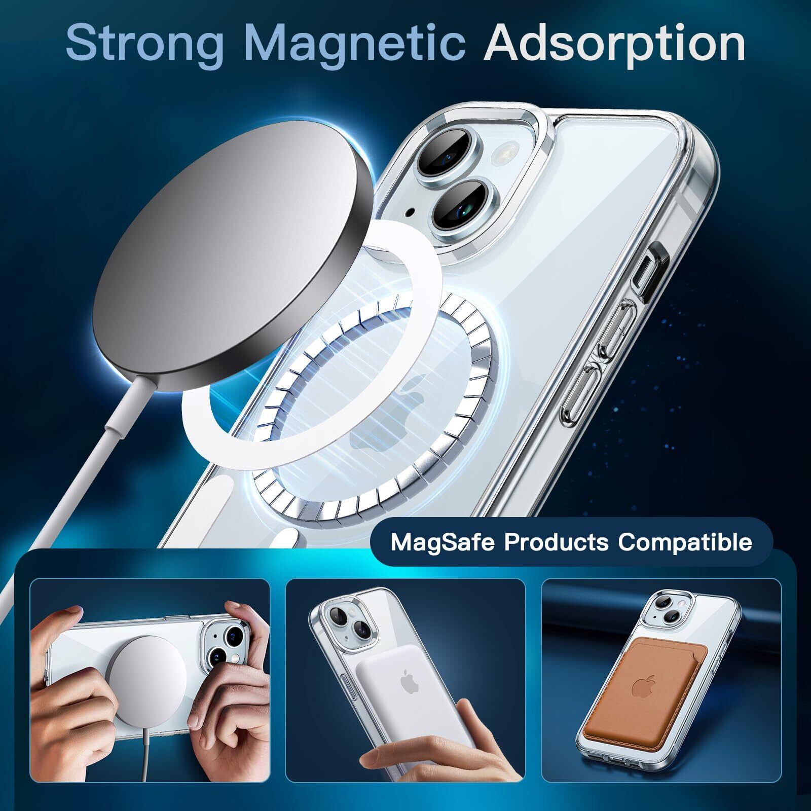 JETech 3 in 1 iPhone 15 6.1 インチ用 マグネット ケース 2枚強化ガラスフィルム付き MagSafe対応 耐衝撃バンパー スマホカバー (クリア)