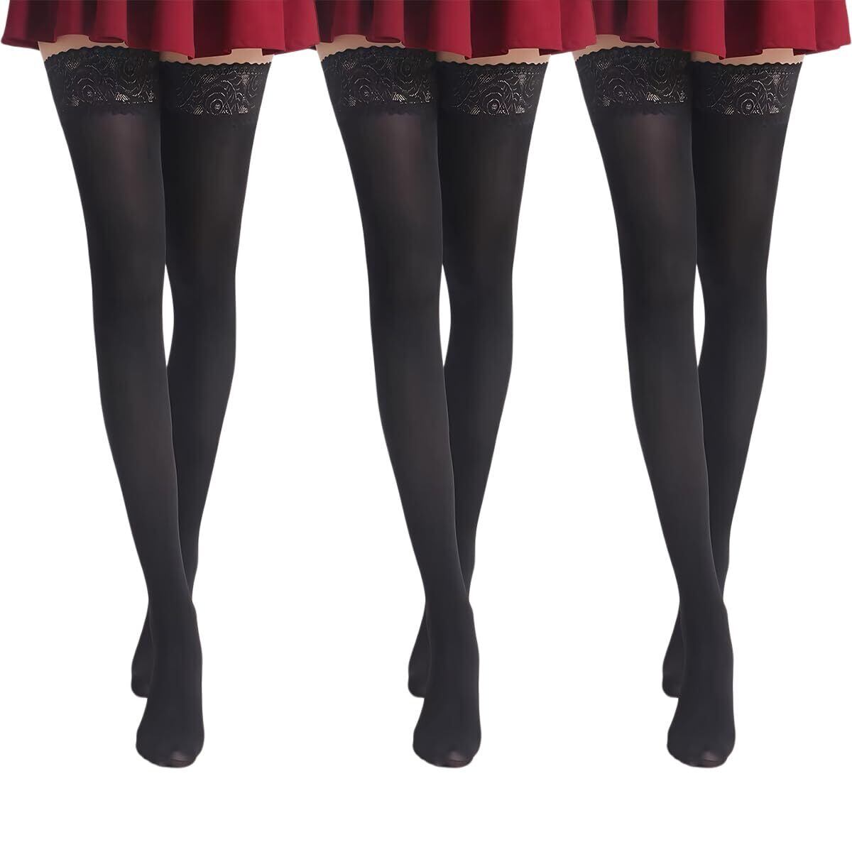 [POPULAR] ニーハイソックス ガーターストッキング 可愛いハイソックス cosplayや制服用 美脚 滑り止め付き 伸縮性あり レース付きストッキング 厚手のソックス 3色から選べます 四季を通じて使える
