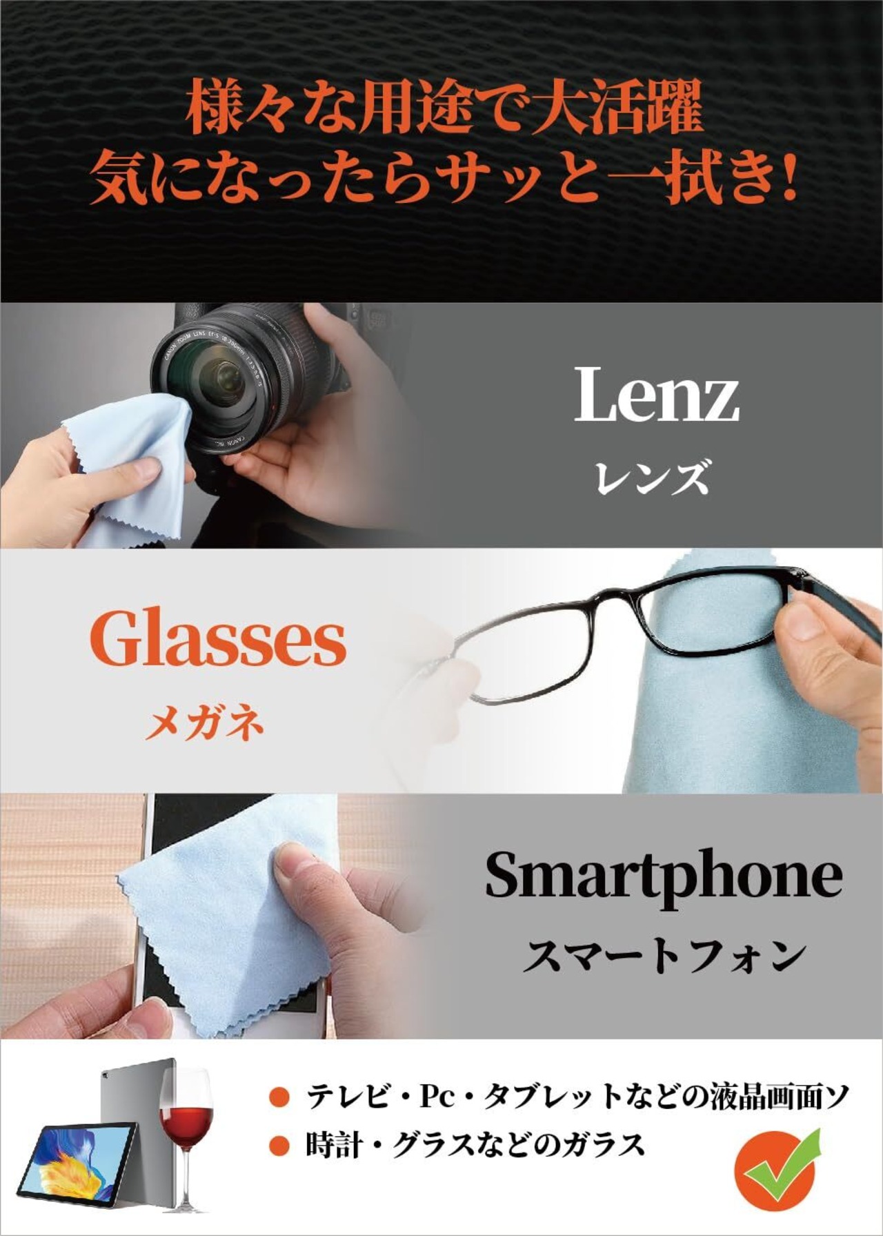 【特価商品】[Marcea] メガネ拭きクロス【20x20cm】 超極細繊維 マイクロファイバー 厚手 超強力 大きめ クリーナー 微細汚れ拭き取り、 カメラレンズ、 液晶画面、 メガネレンズ、スマホ対応 クリーニングクロス 両面とも使用可能で | allstore3