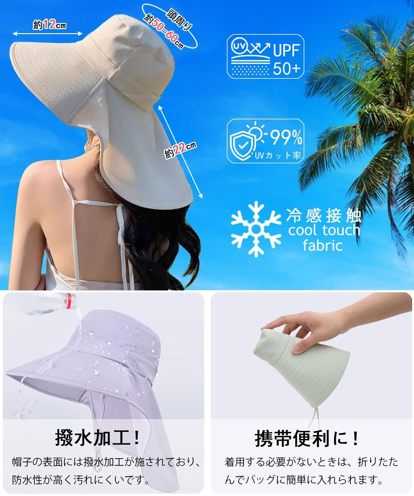 [VaTcsAxg] UVカット 帽子 レディース 日焼け防止 つば広帽子 小顔効果 折りたたみ 日除け帽子 大きいサイズ 完全遮光 通気性 紫外線対策 ハット あご紐 アウトドア 通勤 自転車 登山 海辺 旅行 農作業 春夏