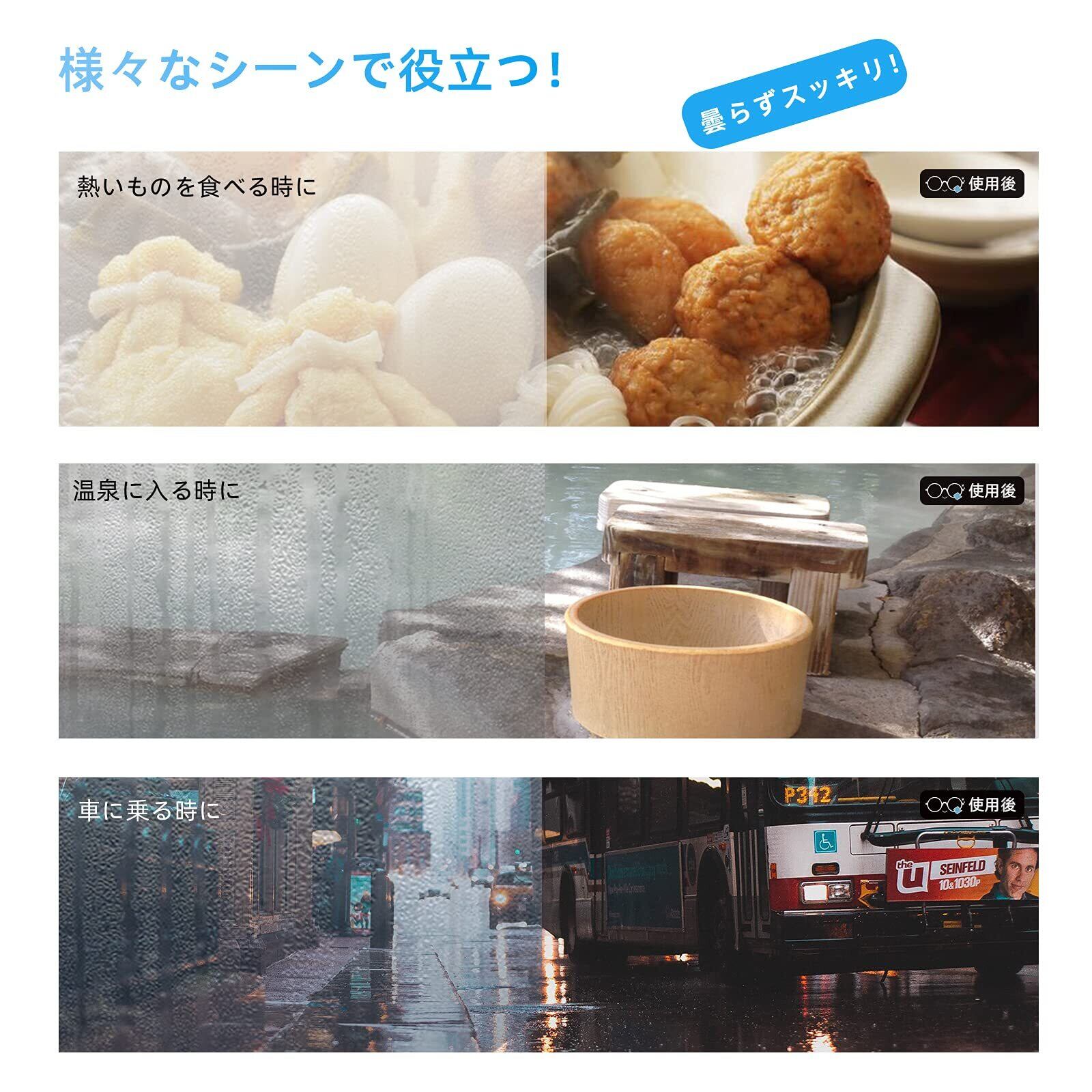 【24時間効果継続】正しい使い方で一回のご使用で24時間視界が遮られることもなくなり、快適に過ごすことができます。※使用環境により効果・持続時間が異なります。レンズの表面にはくもり止め被膜がもうあったり、メガネ拭きが水に濡れたり、メガネクリーナーが密閉に保管してなかったり、以上の状況によっては曇り止め効果が低下になる可能性があります。