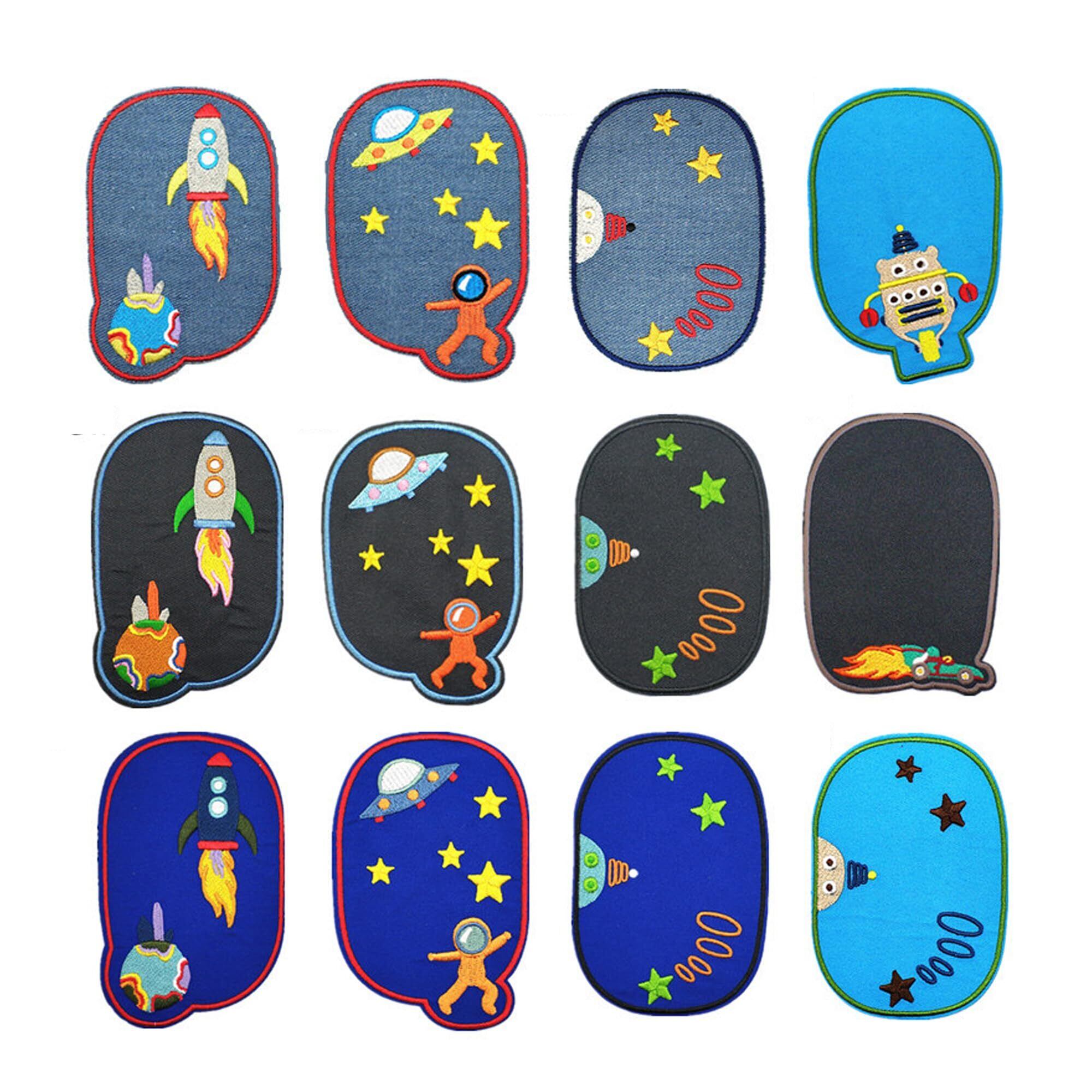 【在庫セール】DEVENTORZ ワッペン 12枚セット 星球 アップリケ アップリケアイロン大きいサイズ デニムパッチ つぎはぎDIYデニム布 刺しゅう ワッペン 膝ひざ肘ひじ補修 水洗い可能 宇宙船 子供 男の子 女の子 DIY服 | allstore3