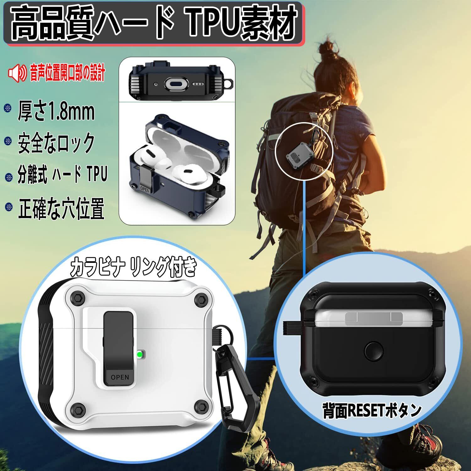 OJBSEN AirPods Pro/Pro2 ケース (2023/2022/2019) AirPods Pro 第1世代/第2世代 ケース 安全ロック付き 自動ボタン ハード TPU えあーぽっつ プロカバー エアーポッズプロカバー Magsafe ワイヤレス充電対応 LEDライトが見える カラビナ付き 分離式 全面保護 耐衝撃 傷防止 軽量 対応 エアぽっず プロ カバー (ホワイト;白い)
