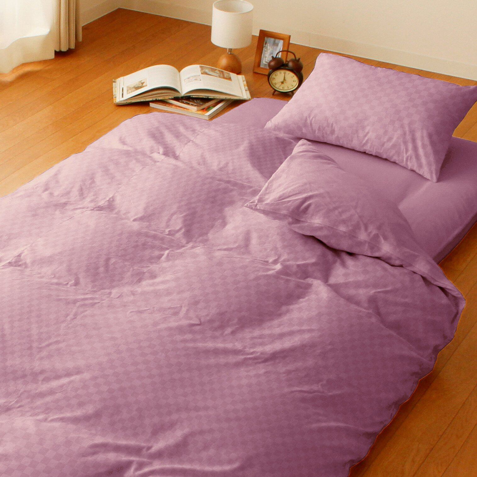単色だが光の加減で市松柄が現れるモダンテイストの枕カバー。和洋室どちらの部屋にもOK。綿100%に比べてしわになりにくく、乾きも早いので洗い替え用にしても便利です。