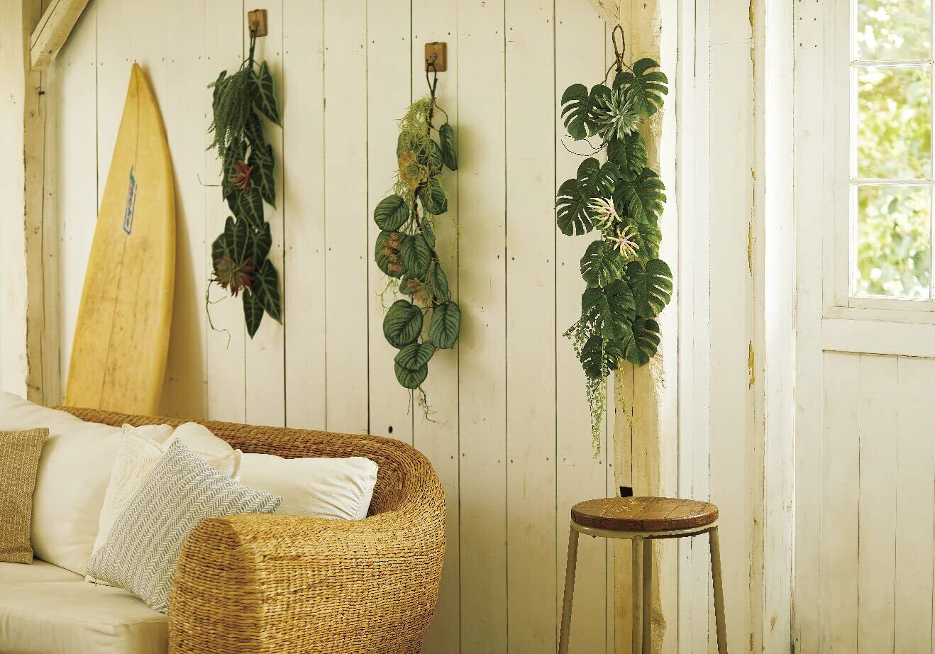 吊るしたり、絡めたり、まるめたりと生花では難しいアレンジが簡単にできます。