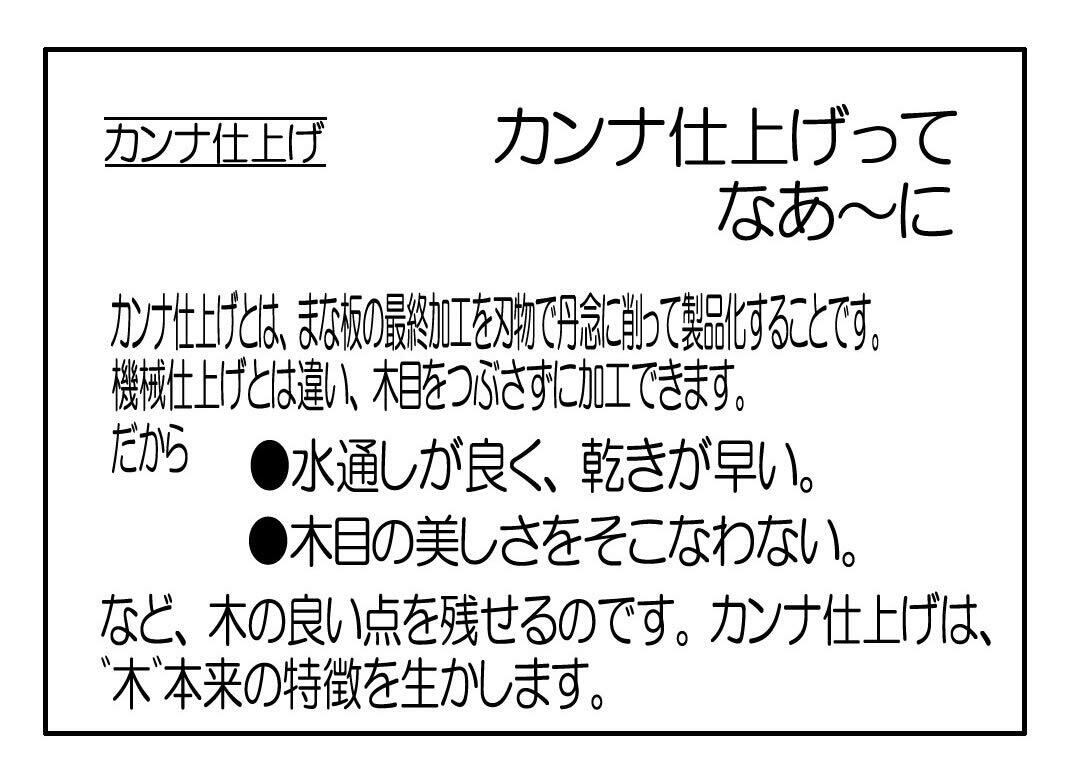 木目をつぶさないカンナ仕上げで、水通しがよく乾きが速いなど木本来の良さが生きています。