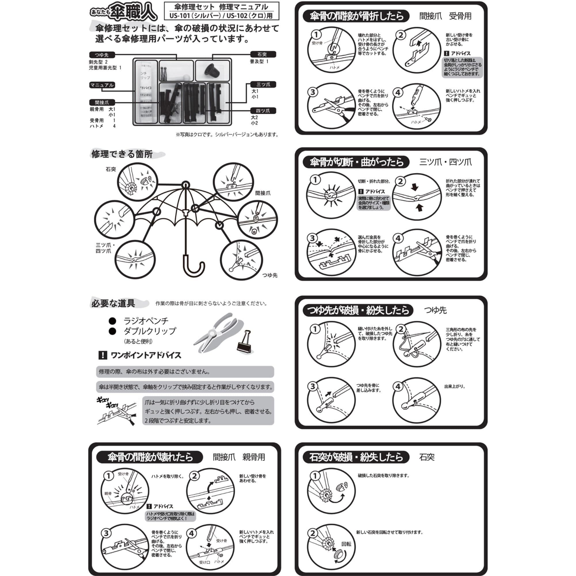 【在庫処分】和気産業(Waki Sangyo) あなたも傘職人 傘修理セット 交換 13点セット 黒 US-102