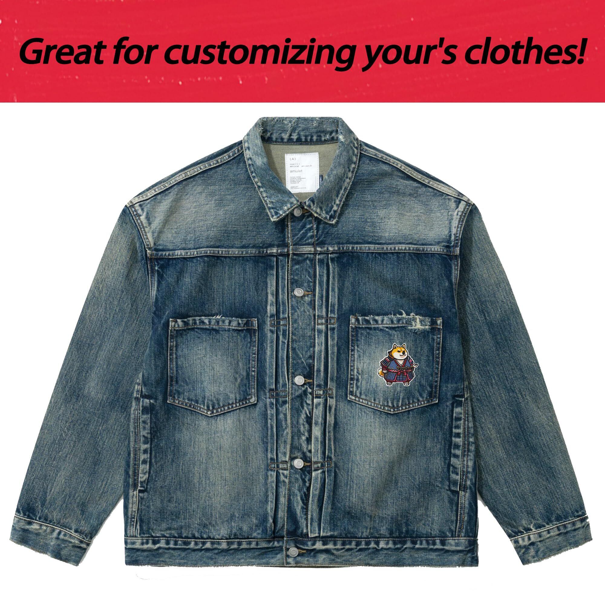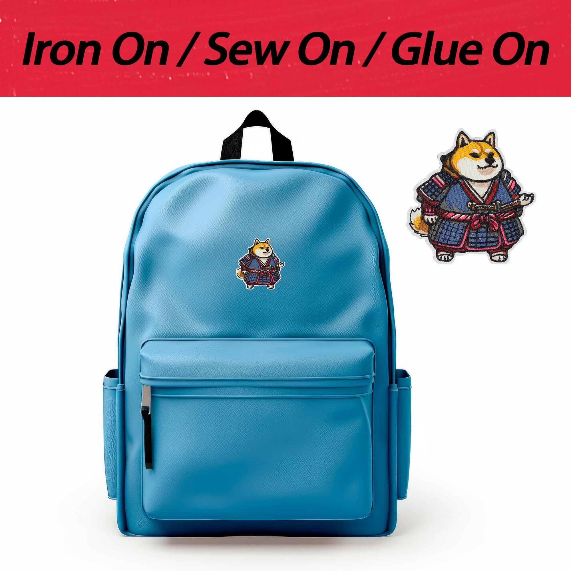 【在庫セール】Wikineon サムライ柴犬 ワッペン アイロン&縫い付け両用 | おしゃれで大人向けデザイン | ジャケット・パーカー・ジーンズ用刺繍パッチ