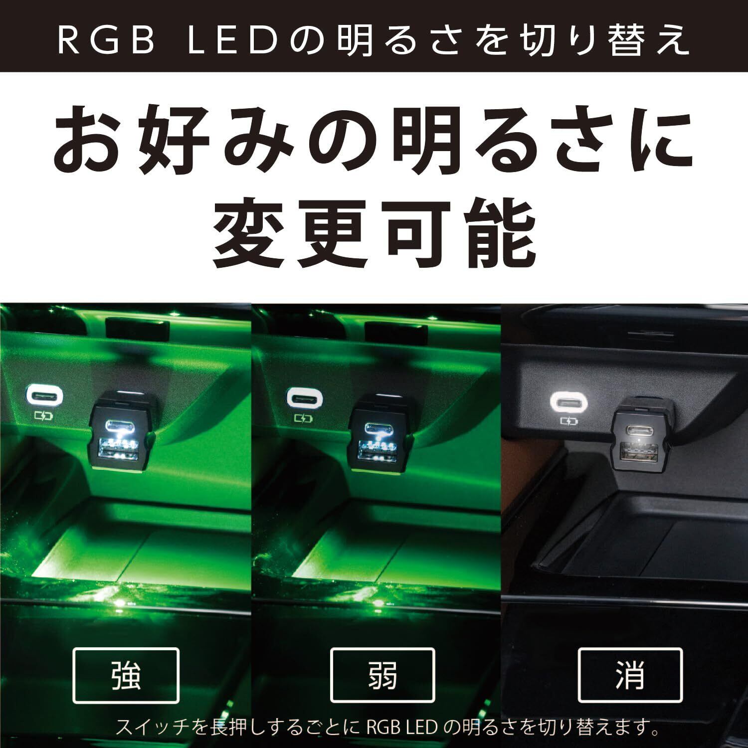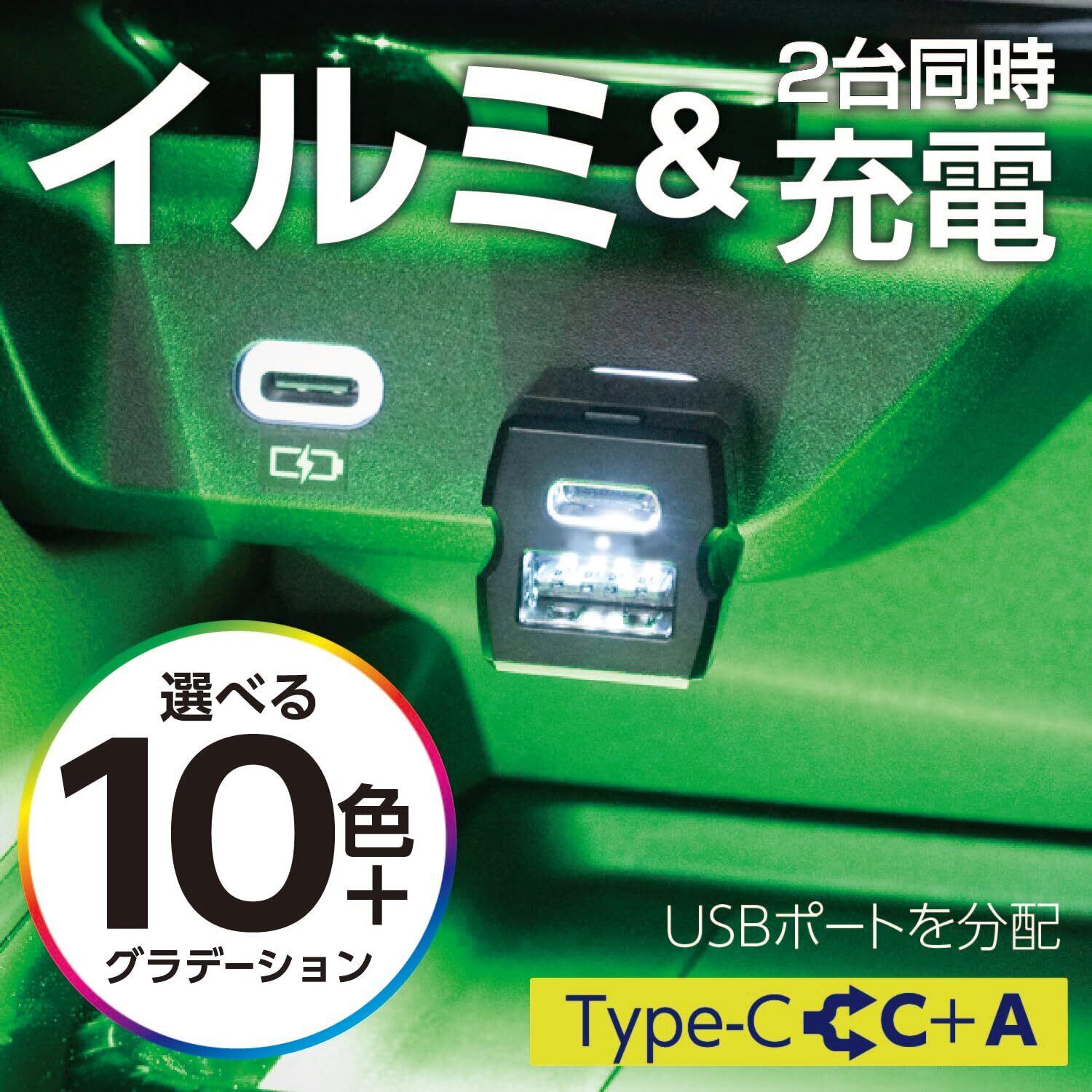 【新春セール】セイワ(SEIWA) 車内用品 USBハブ レインボーイルミ2USBコネクタ CtoC+A F351 USB-C&USB-A 拡張 充電器 2台同時充電 最大5V/3A LEDライト付き 調光機能 選べる10色 単色固定可能 グラデーション 小型 コンパクト 充電専用