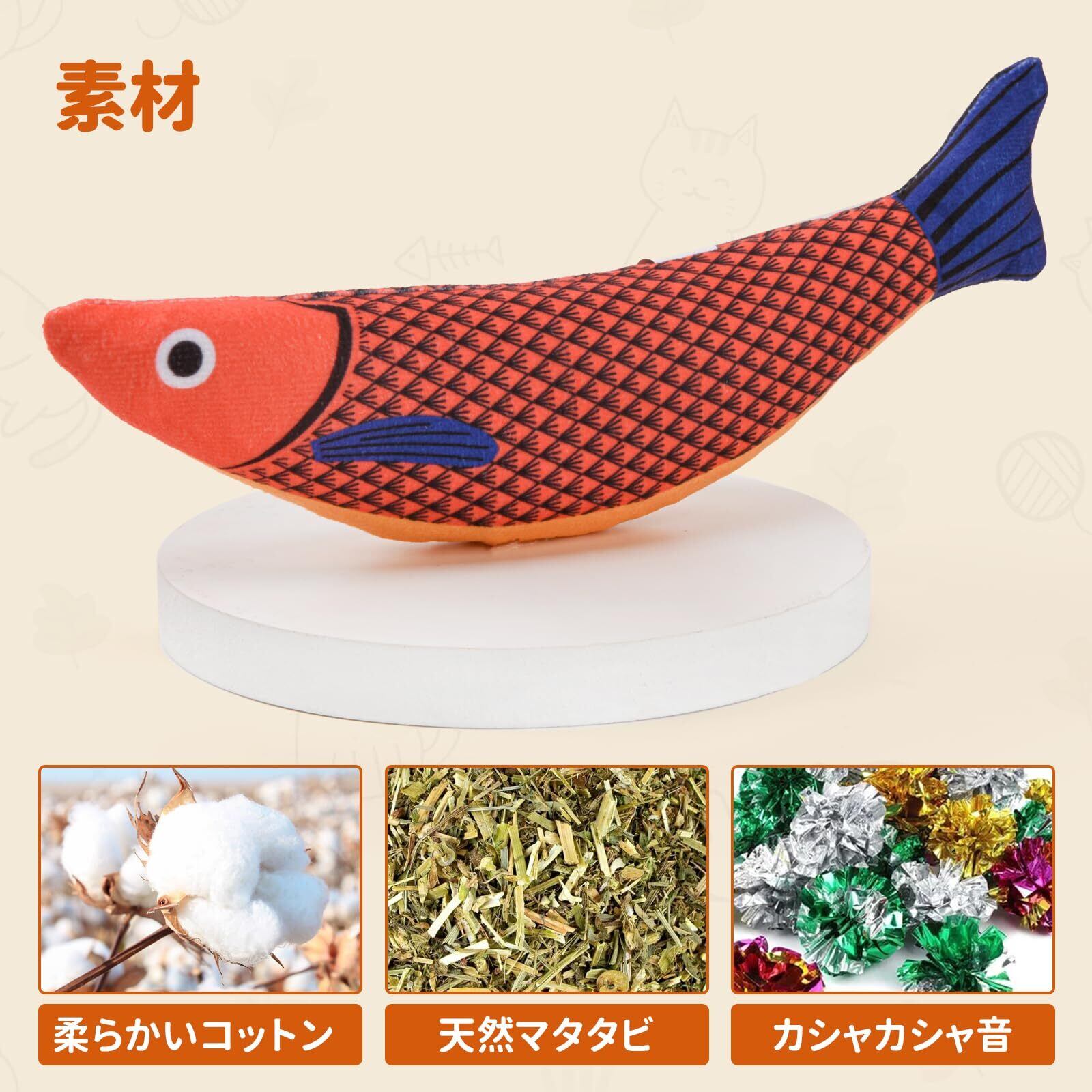 AUSCAT 猫 おもちゃ 魚 またたび玩具 猫用ぬいぐるみ ひとり遊び キャットニップ入り 噛むおもちゃ 3点セット