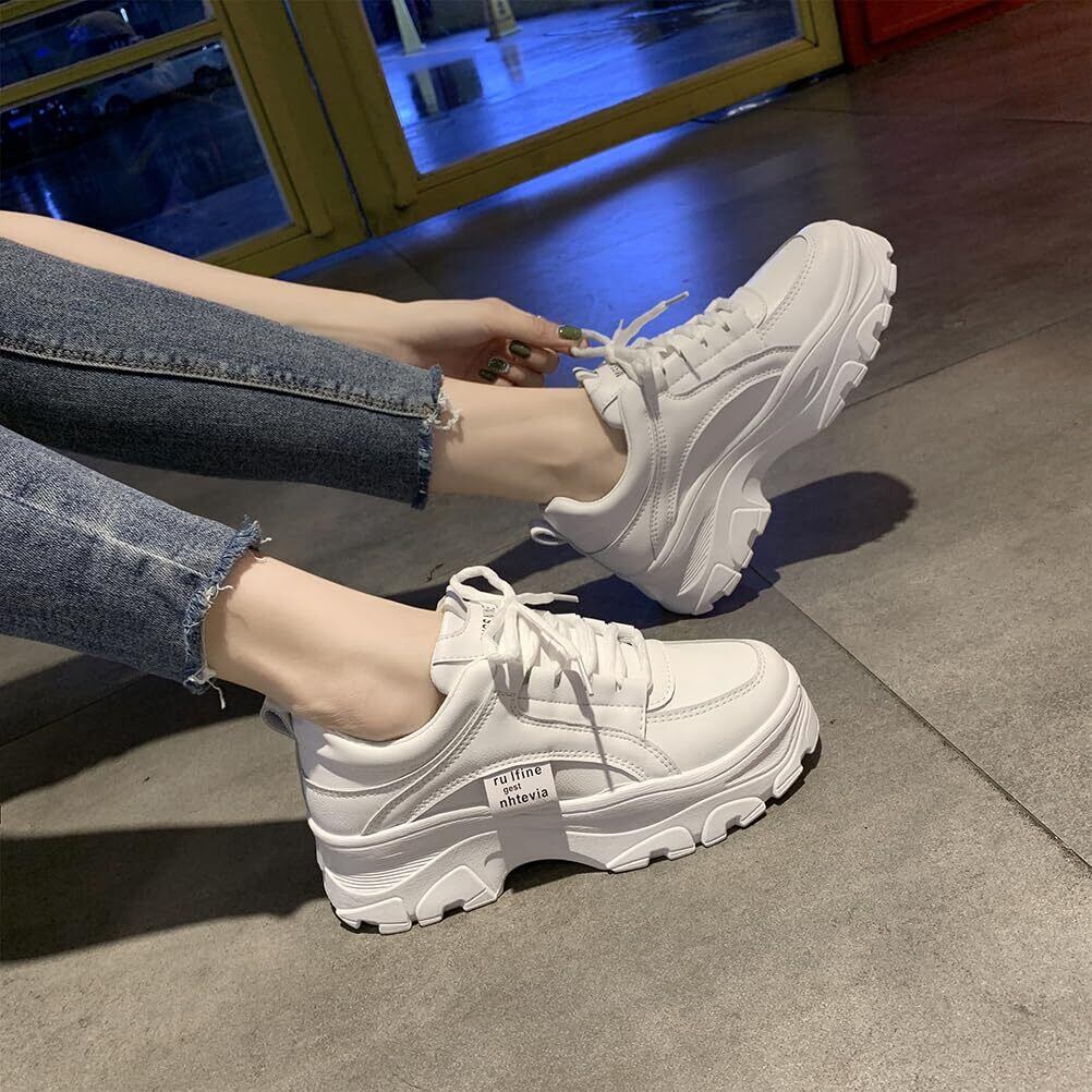 [SenHu] スニーカー レディース 厚底スニーカー ダッドスニーカー 白 厚底 ランニングシューズ 黒 スポーツ シューズ 靴 ウォーキングシューズ 運動靴 通気性 防水 カジュアル 身長アップ 女性用 通勤 通学 5cm UP