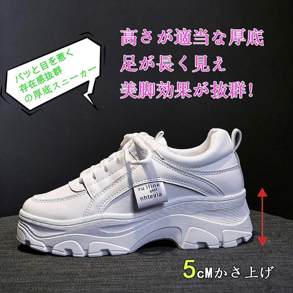 【美脚、超人気】見た目はオシャレで可愛いのが超人気の女性用厚底スニーカーです。5cm UPの美脚効果を実現。厚底+インヒールでナチュラルに脚長効果を演出。適度な体格比率をアップし、自信を増強します。