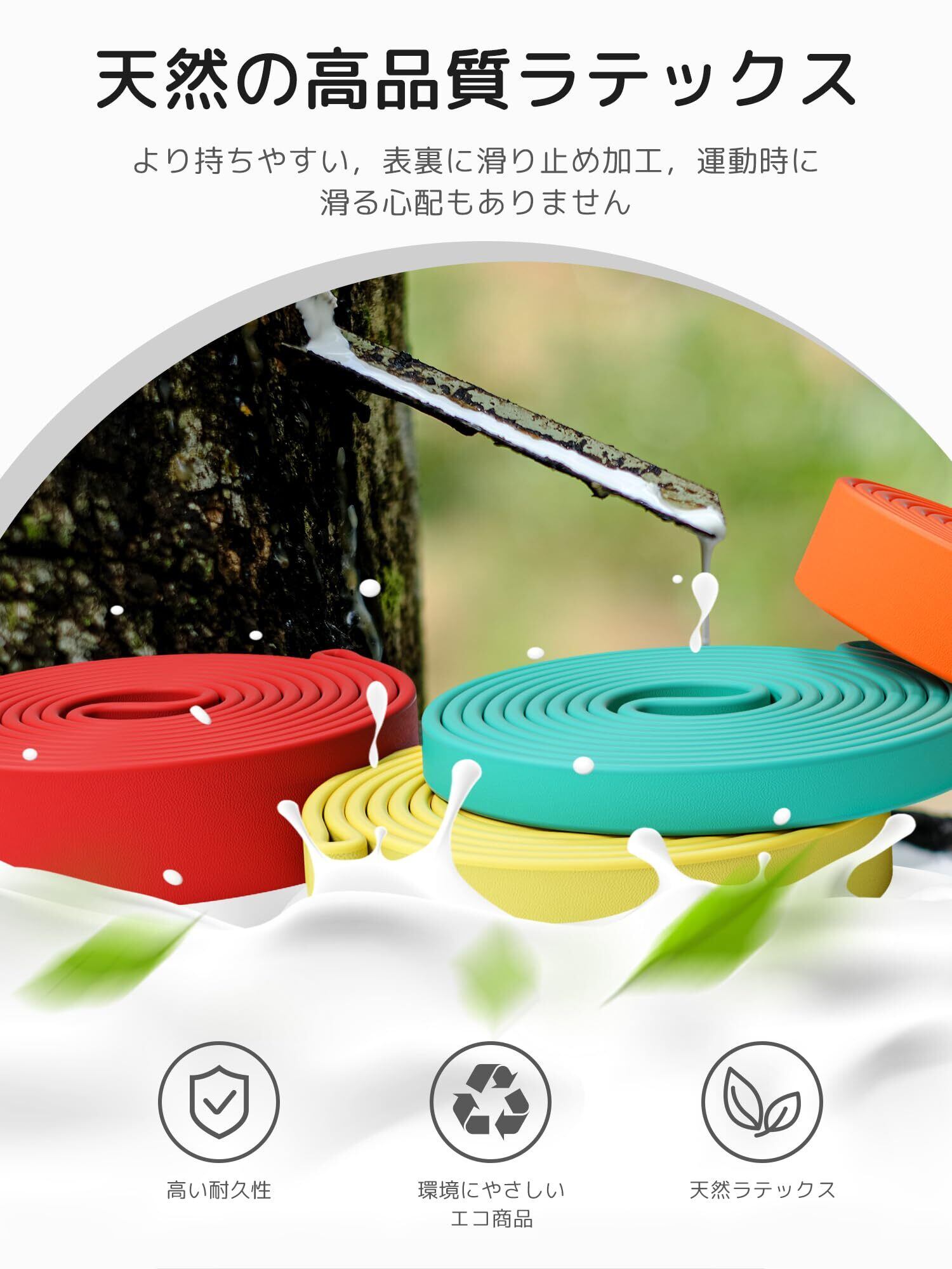 【6倍のストレッチ性】 丸いエッジのデザインにより、トレーニングバンドは6倍の伸縮性を持ち、強くて柔軟な反発力を保ち、高度な動作のトレーニングに適しています。