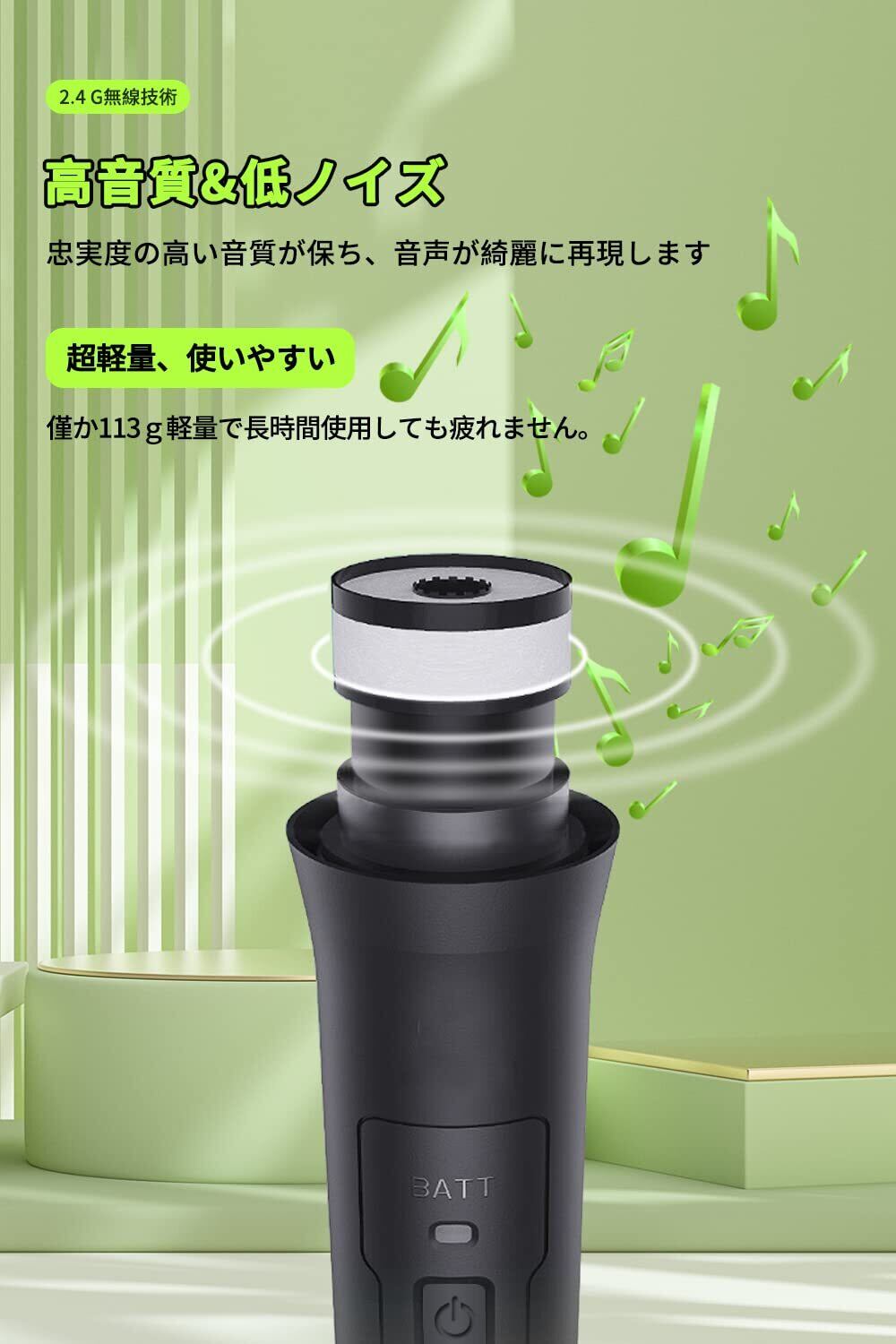 【安定した2.4 G無線信号伝送】本マイクは弊社最新の2.4 G無線伝送技術に基づいて、高音質と安定した音質、音の伝送が低遅延ということを確保されます。コードに邪魔されず、思った以上の自由度が楽しめます。無線信号の到達距離は約10メートルまでとなります。