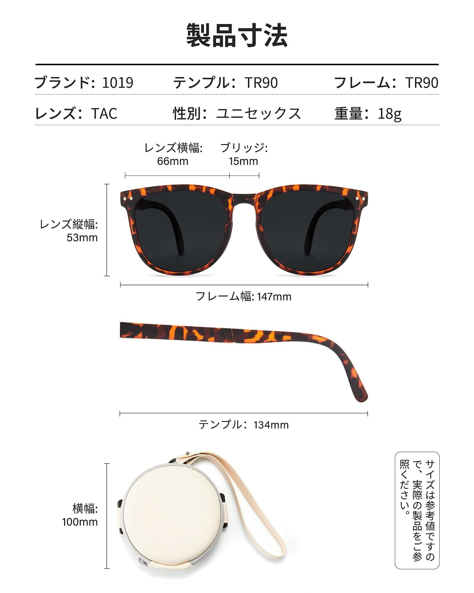 折りたたみサングラス:軽量かつコンパクトなデザインで、バッグにお気軽に入れて持ち運びに便利です。良質なフレームを採用し、長時間使用しても変形しにくいです。また、デザイン性のある円型収納ケースもファッションアイテムの一つを増え、コーディネートしやすいです