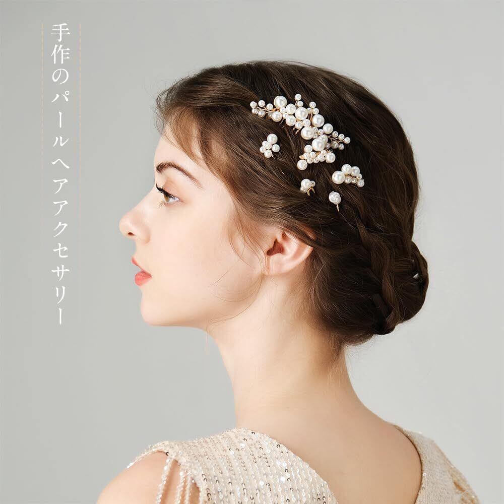 【豪華で気品と高級感が】 心を込めて異なる大きさの光沢ありパールを選用して、綺麗なデザインで美しい色が輝いて、上品感と优雅感を演出して、普段にも存在感が抜群なパール髪飾りセットです。挿したときに頭の形にぴたりと添うので、どなたでも手軽に、美しいヘアアレンジをお楽しみいただけます。