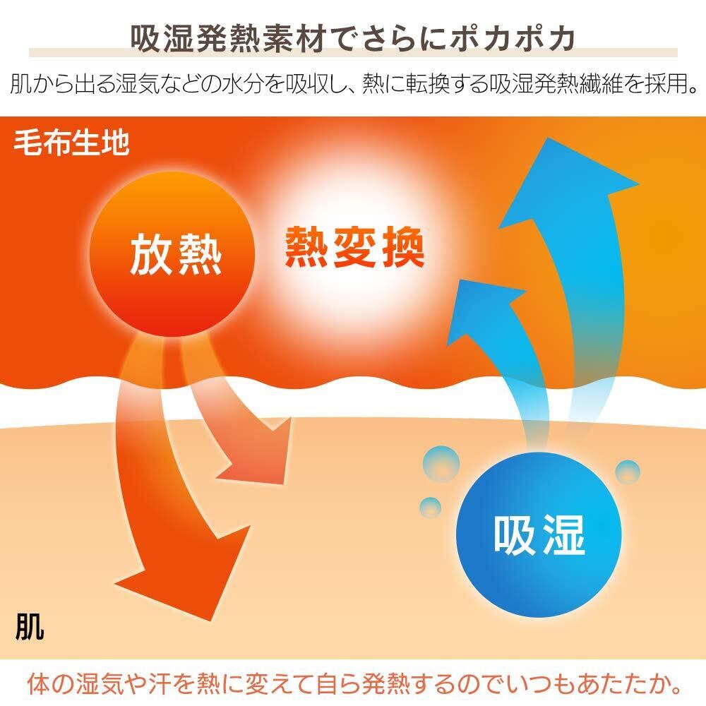 【吸湿発熱素材で朝まで暖かい】肌から出る湿気などの水分を吸収し、熱に転換する吸湿発熱繊維を採用。さらに密度が高いので、あたたかい空気の層を逃さずしっかりキープできる。