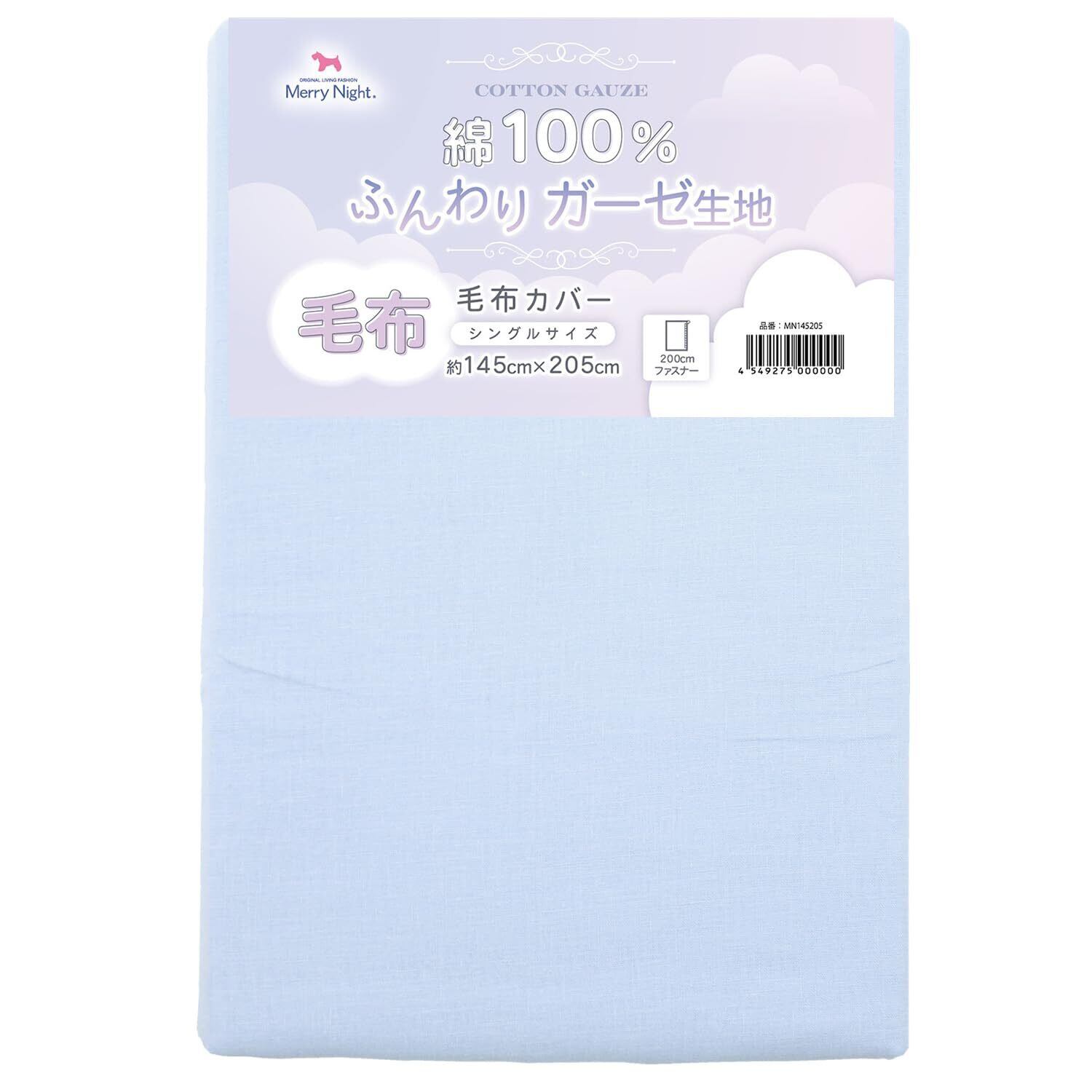 【数量限定】メリーナイト 毛布カバー ガーゼ ブルー シングル 約145×205cm 綿100% 軽量 通気性 ふんわりやさしい肌触り 吸水性 洗える すぐ乾く 衛生的 清潔 毛布の毛羽の飛散を防ぐ 秋冬寝具 MN145205-76