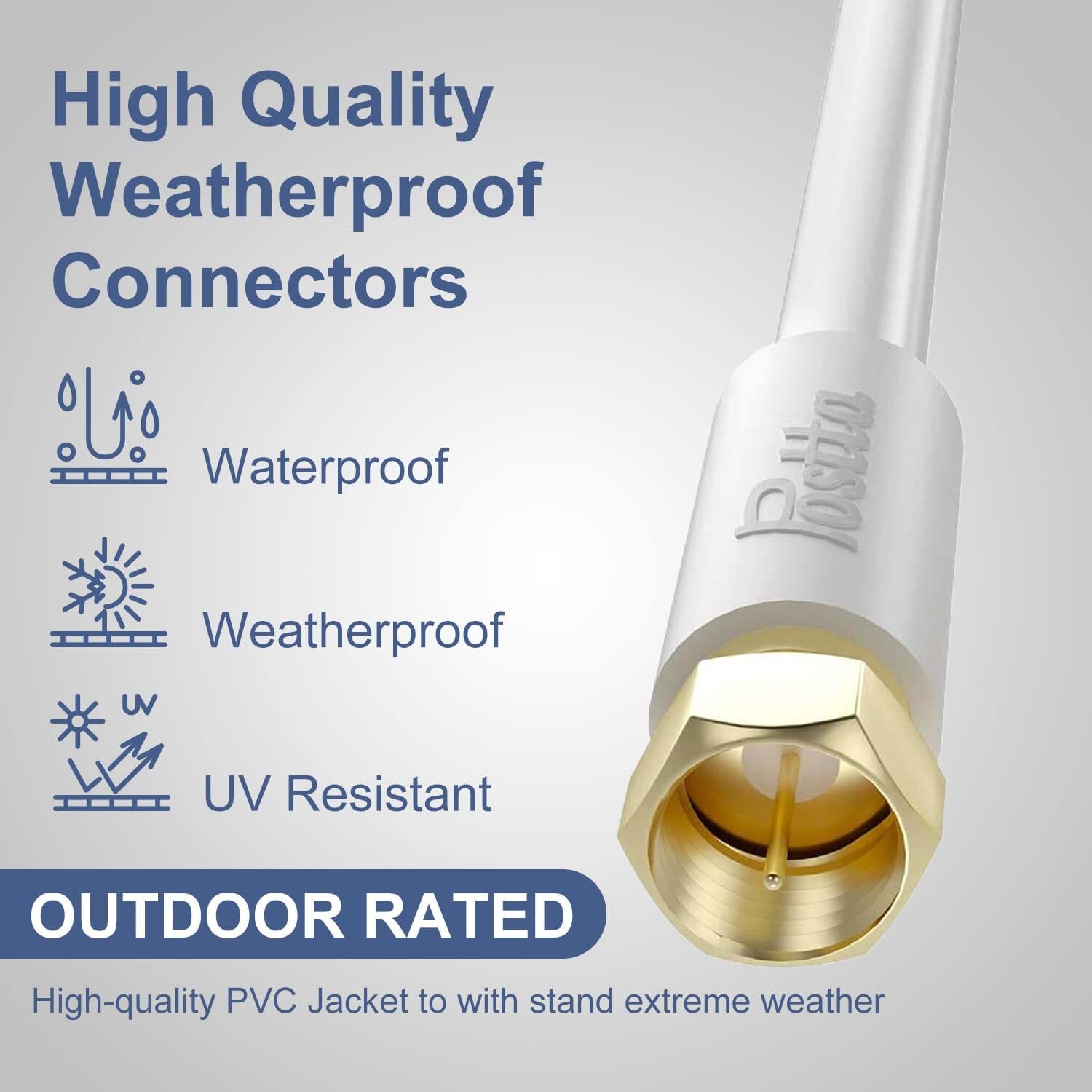 【特価セール】Postta アンテナケーブル 10M 同軸ケーブル テレビ用 S-5C-FB(RG6) 4K8K 地デジ・BS・CS・CATV放送対応 金メッキプラグ F型プラグ ホワイト | allstore3