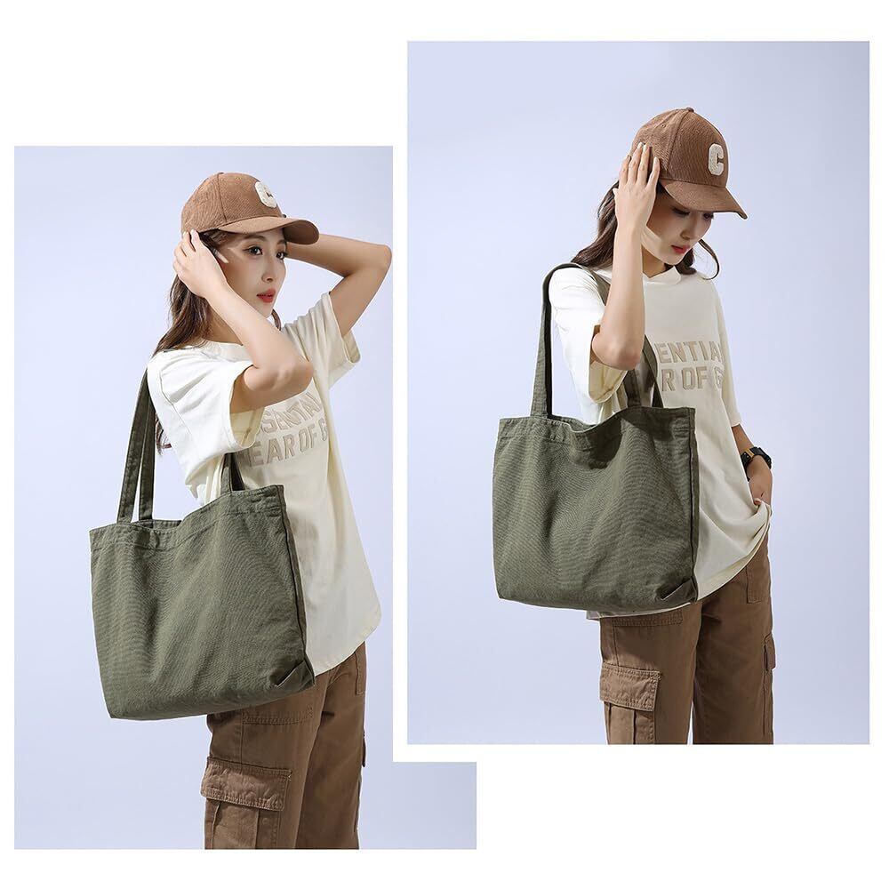 [Volsha] トートバック キャンバス, A4 大容量 トート キャンバス ショルダーバッグ 無地 キャンパストート帆布 男女兼用 通勤通学