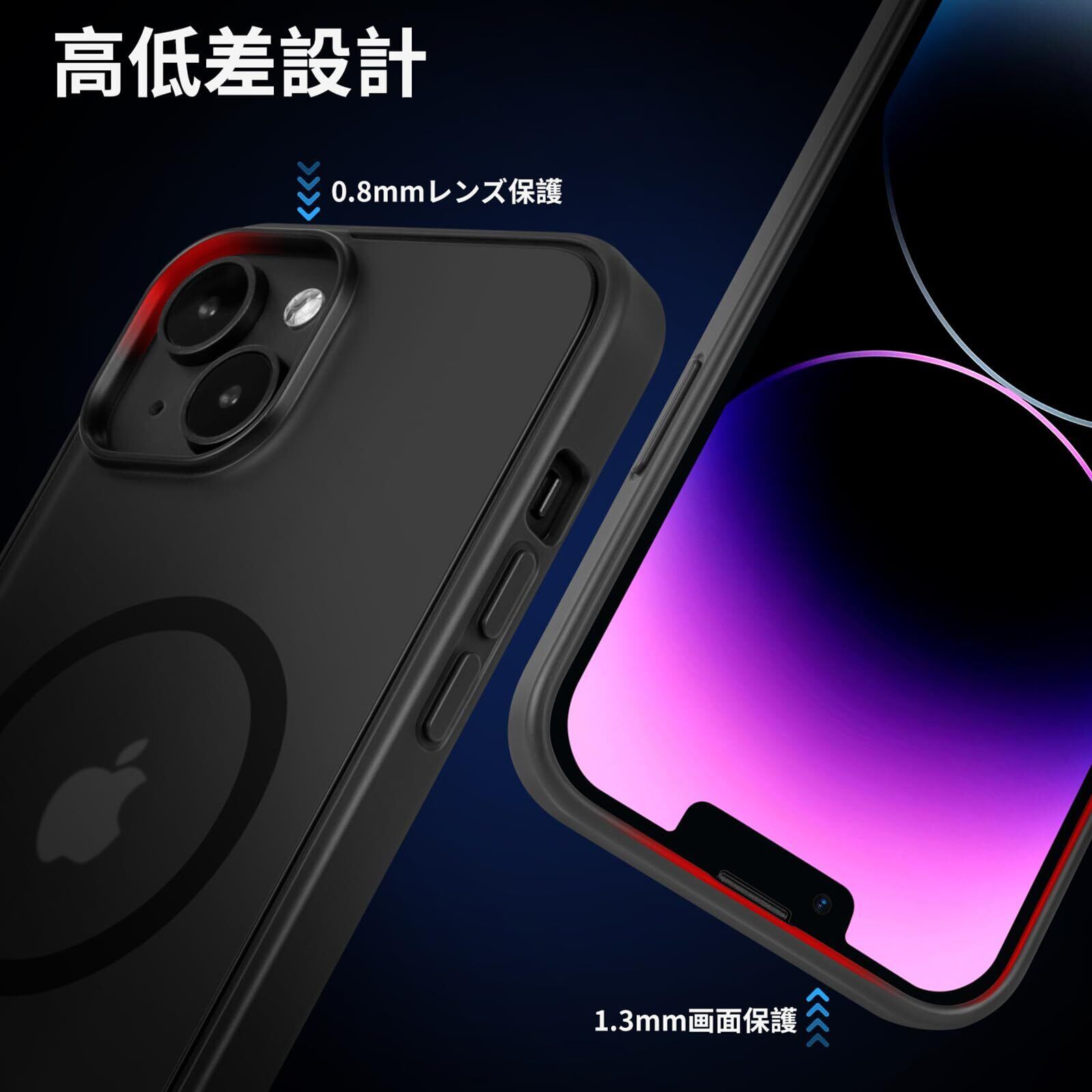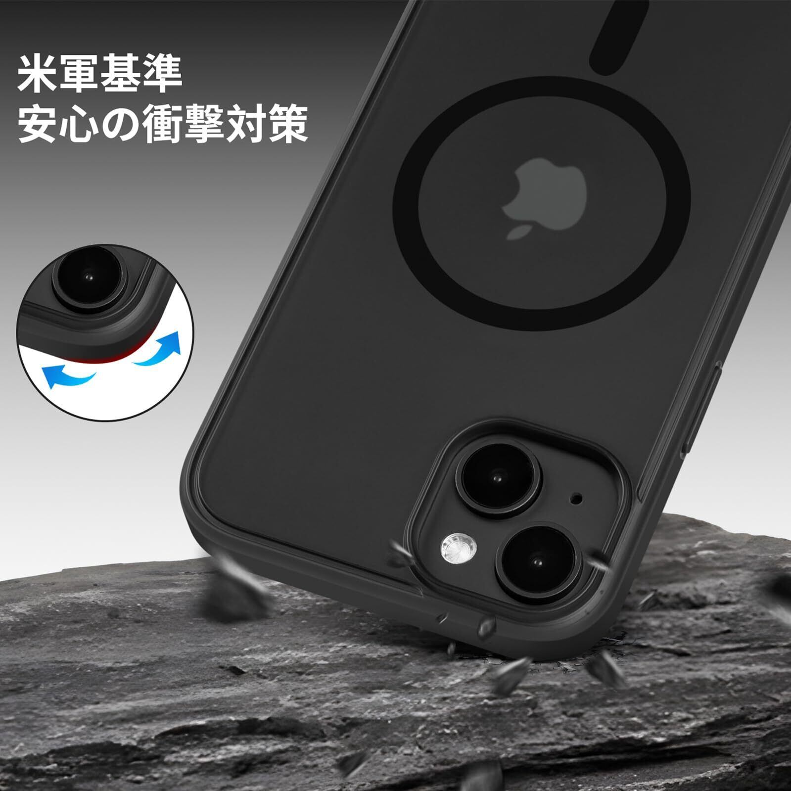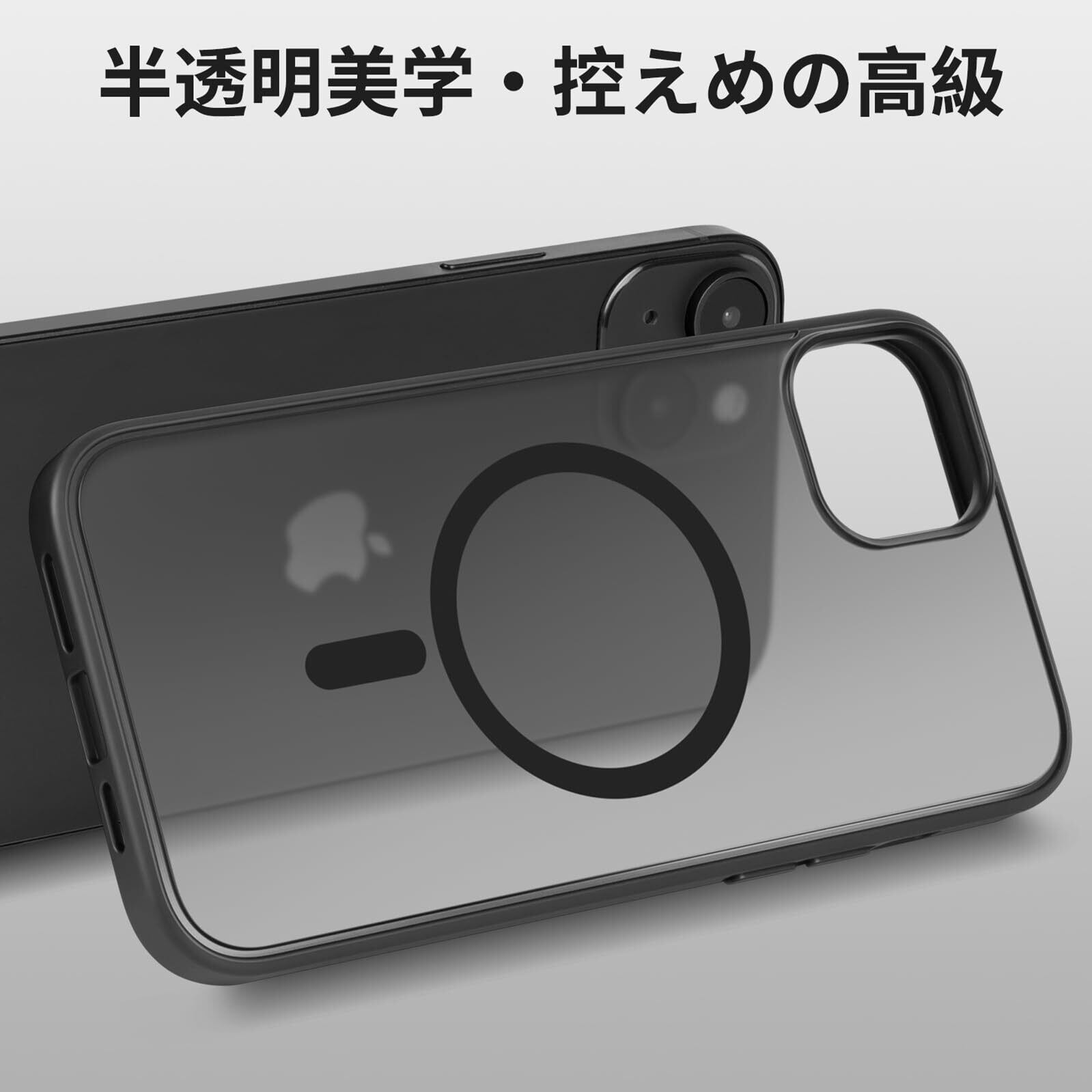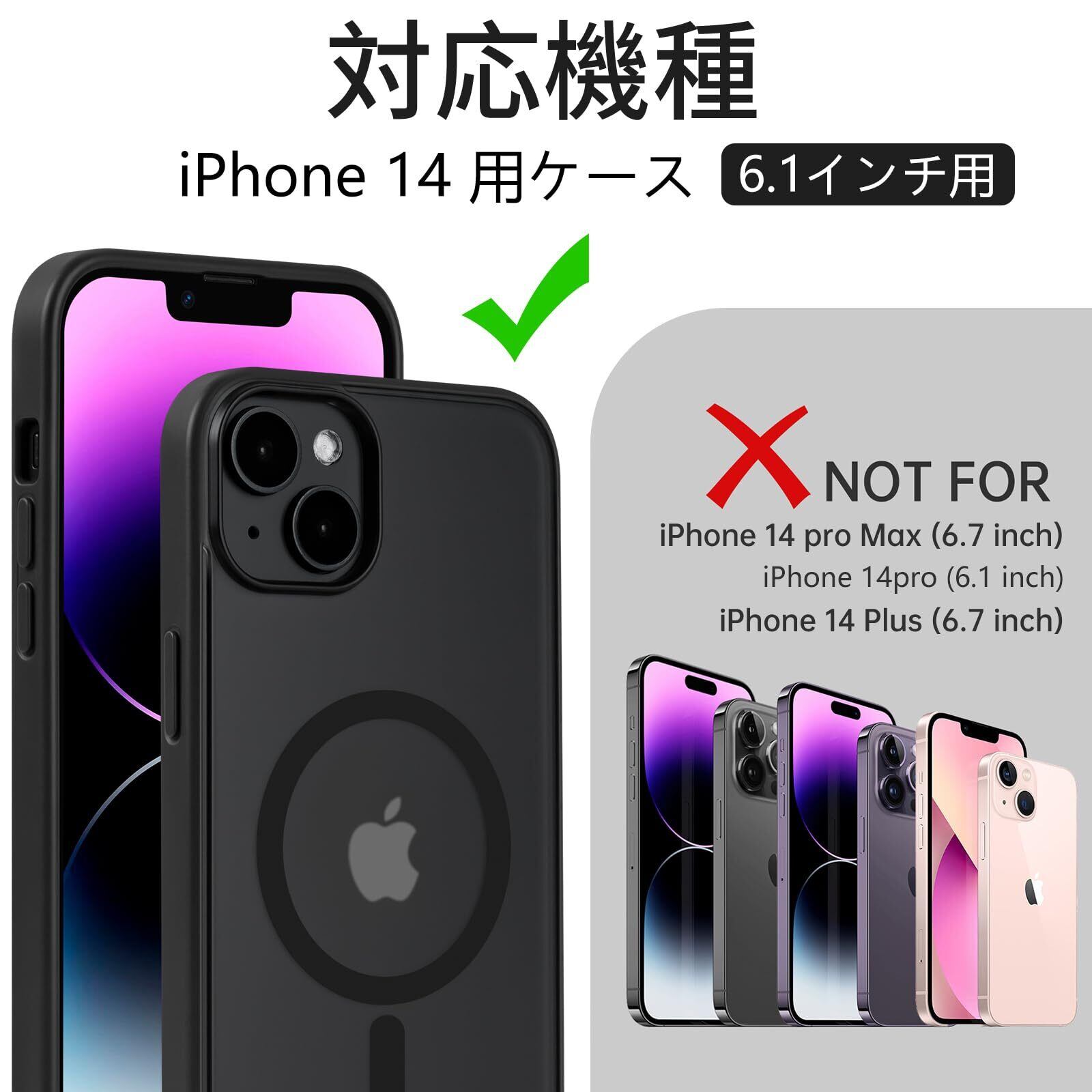 iPhone 14 用ケース Magsafe対応 iphone14 ケース 耐衝撃 マット 滑り止め 指紋防止 米軍MIL規格 黄変防止 耐久性 ワイヤレス充電対応 半透明 マグネット搭載アイフォン 14 用 6.1 インチ (ブラック)