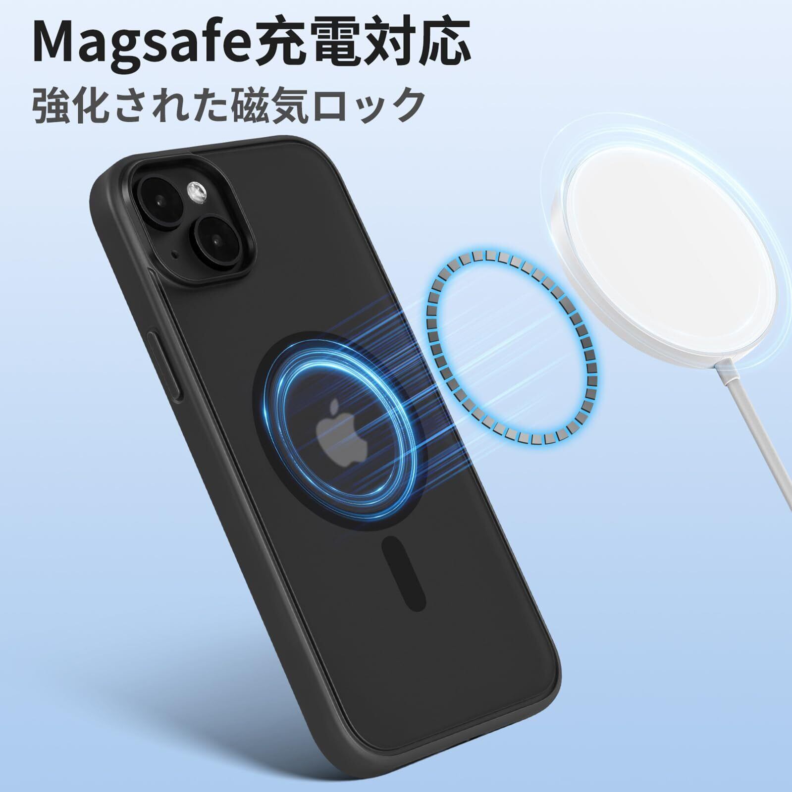 【在庫処分】iPhone 14 用ケース Magsafe対応 iphone14 ケース 耐衝撃 マット 滑り止め 指紋防止 米軍MIL規格 黄変防止 耐久性 ワイヤレス充電対応 半透明 マグネット搭載アイフォン 14 用 6.1 インチ (ブラック)