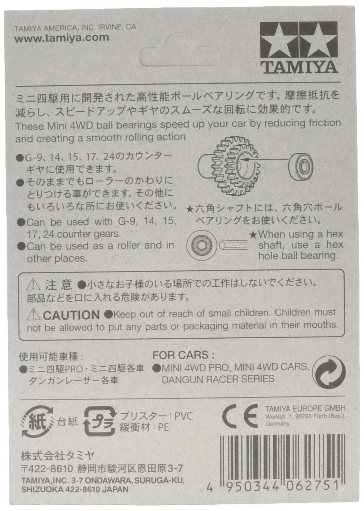 ミニ四駆のカウンターギヤ (一部を除く)の中に装着することで、ギヤの回転抵抗を減らす