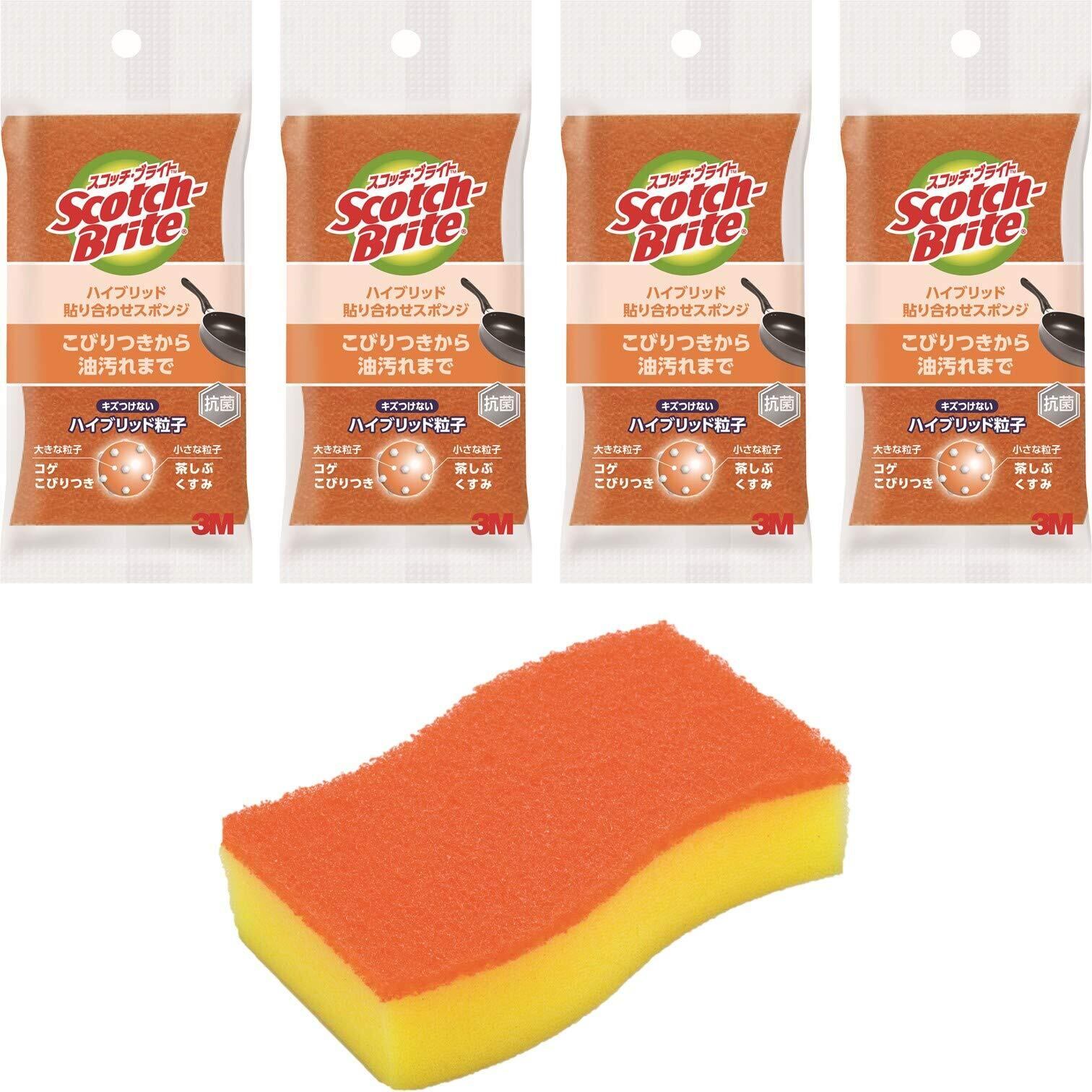 3M スポンジ キッチン キズつけない 抗菌 ハイブリッド オレンジ 4個 スコッチブライト HBE-4P