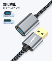 【在庫処分】SUNGUY USB 3.0 延長ケーブル 0.3M USB延長 5Gbps 高速データ転送 Aオス-Aメス 短い 延長コード ナイロン編み 金メッキコネクタ グレー 30cm | allstore3