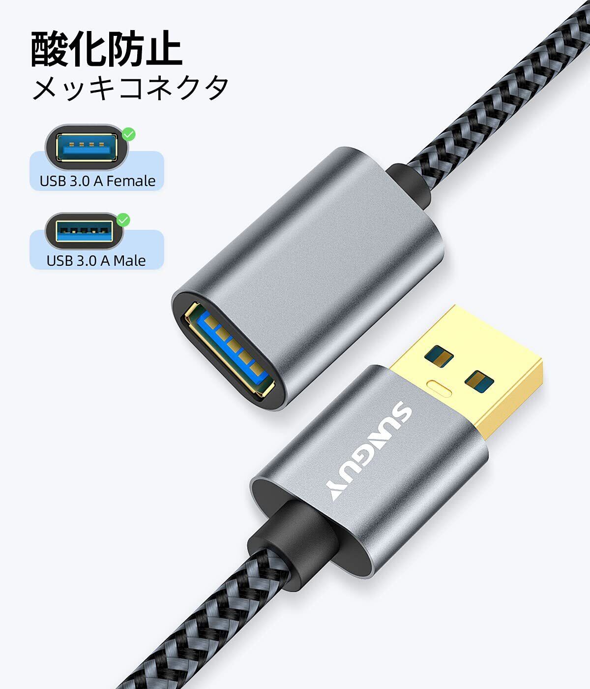 SUNGUY USB 3.0 延長ケーブル 0.3M USB延長 5Gbps 高速データ転送 Aオス-Aメス 短い 延長コード ナイロン編み 金メッキコネクタ グレー 30cm