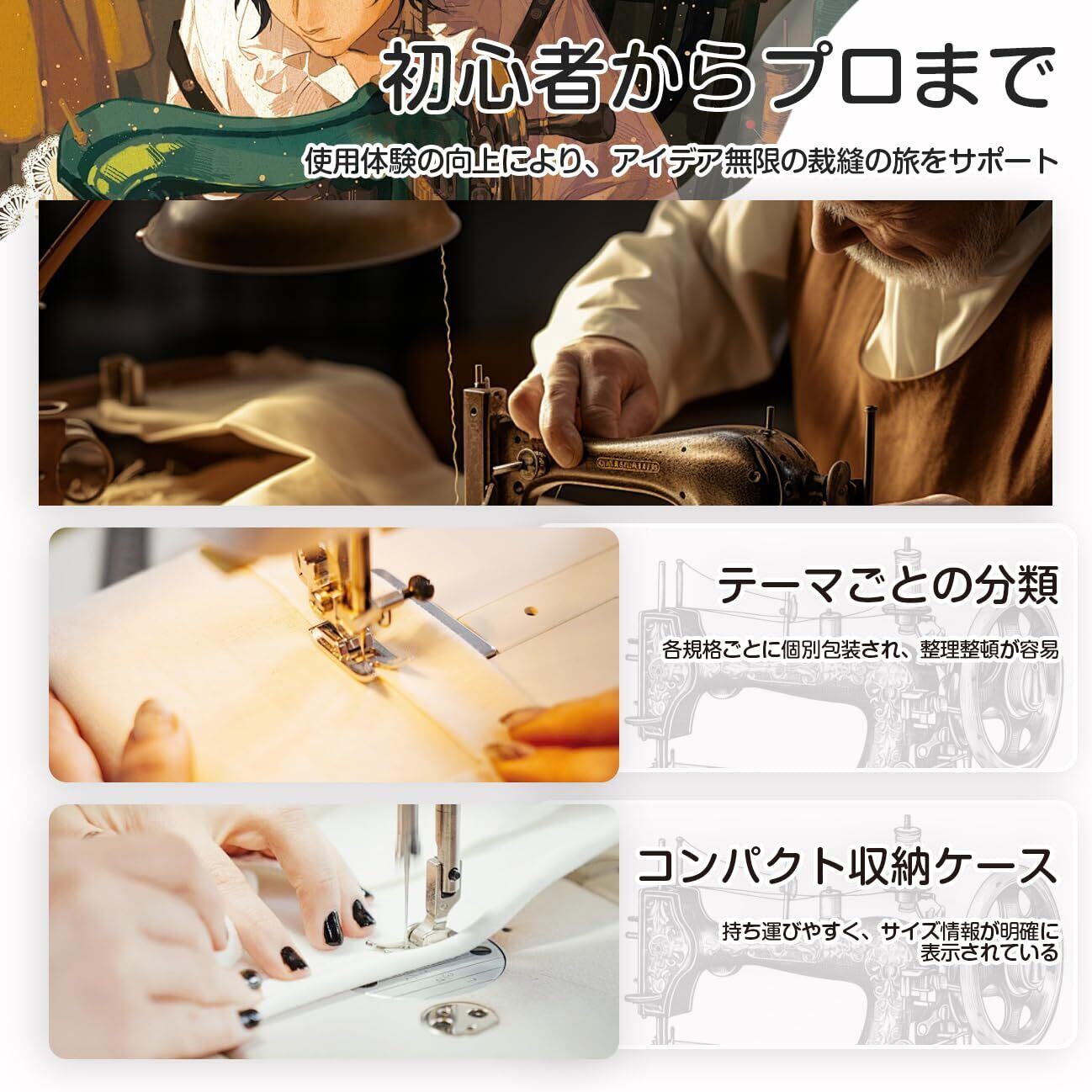 全シリーズの多機能ミシン針セットは、卓越した品質、細かい分類、便利な収納、幅広い用途と個性的なデザインで、裁縫愛好家一人一人にかつてない使用体験をもたらします。初心者でもベテラン職人でも、ここで心のこもった選択肢を見つけて、アイデア無限の裁縫の旅を開くことができます。
