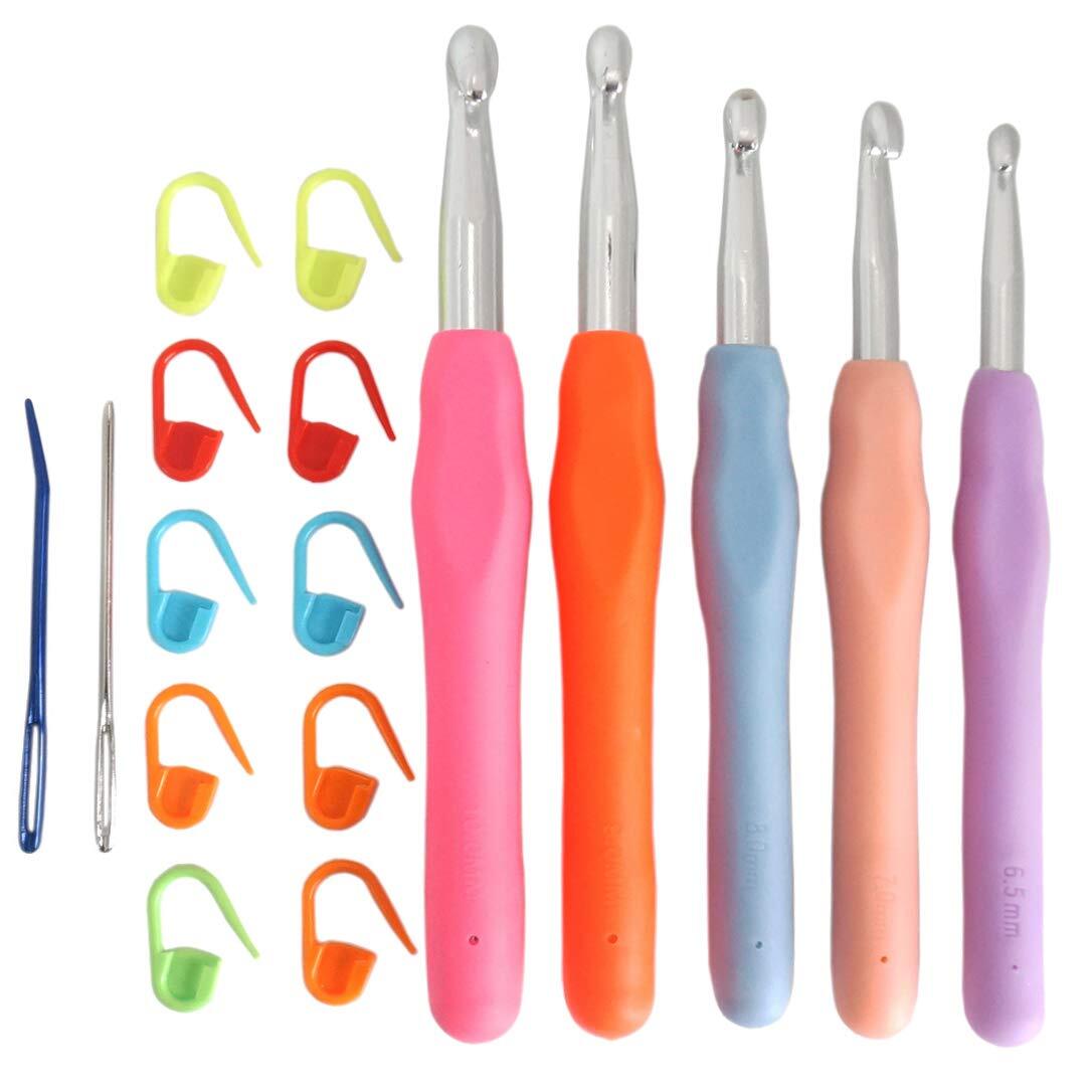 かぎ針17点セット 編み針 編み棒 ソフトなグリップ レース針 手芸 手編み 針 毛糸編み針5本 径6mm/7mm/8mm/9mm/10mm