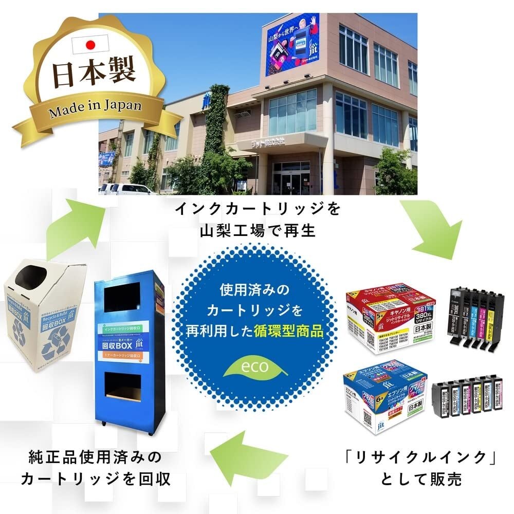 純正インクカートリッジを再利用し、インクの生産から充填・梱包まで全て日本国内で行っている安価で高品質な商品です。