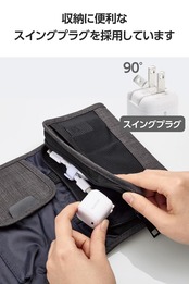 ■未使用時は電源プラグを折りたたんで充電器本体に収納可能です。スッキリとコンパクトに収納できるので、持ち運びにも便利です。