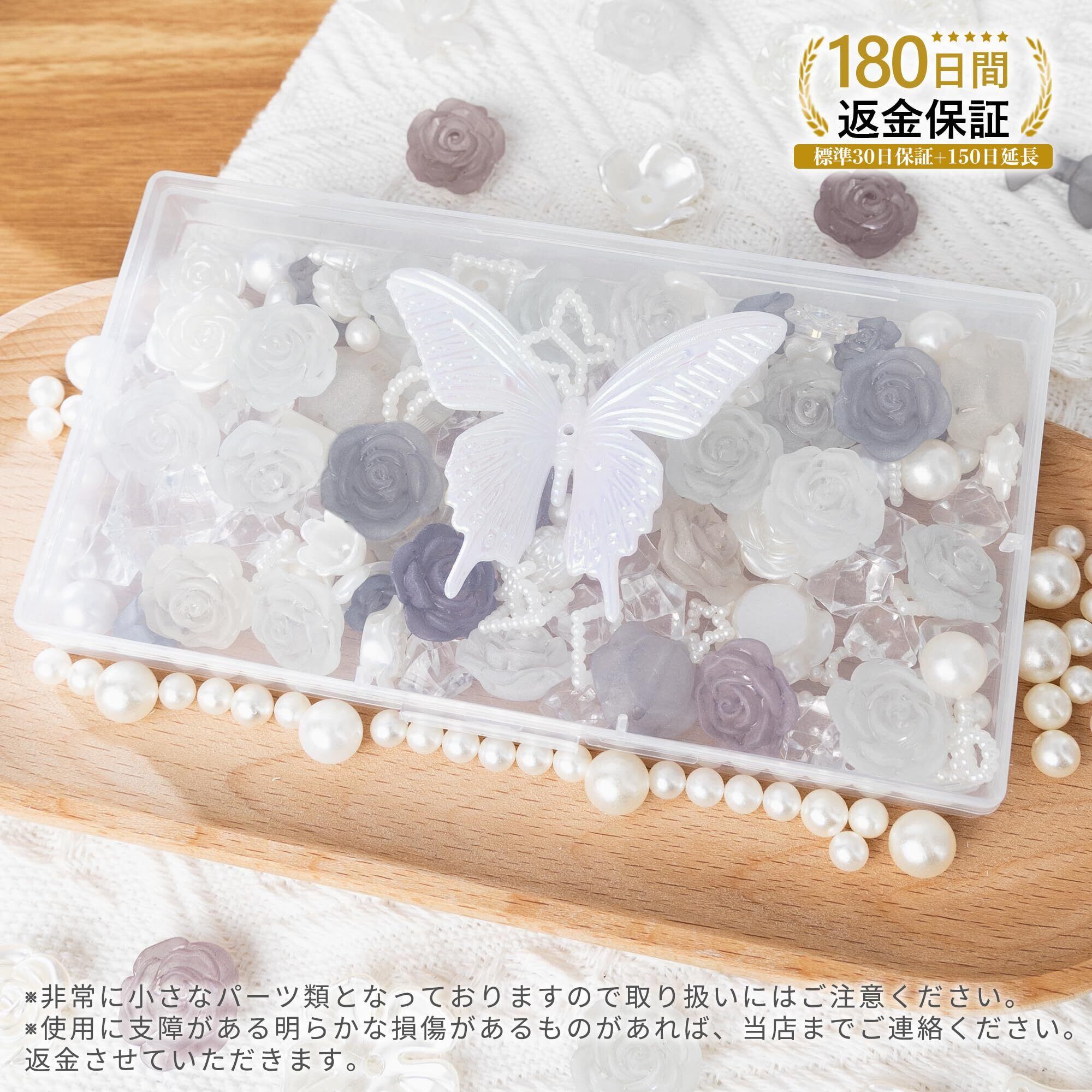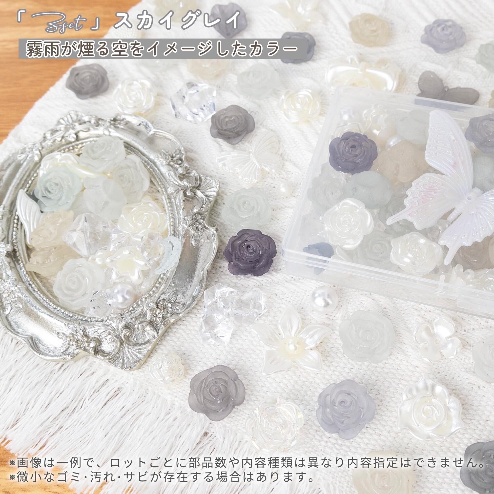 デコパーツ ビーズ ホイップデコ パーツ 【特典ビーズ含む·26セット展開·約110個】 アクリル セット トレカ 硬質ケース デコ 手芸 ハンドメイド デコ 素材 可愛い デコレーション セット アクセサリー 薔薇 パール 貝殻 リボン 蝶 クリア デコトレカケース ロココ調 (【Z】スカイグレイ)