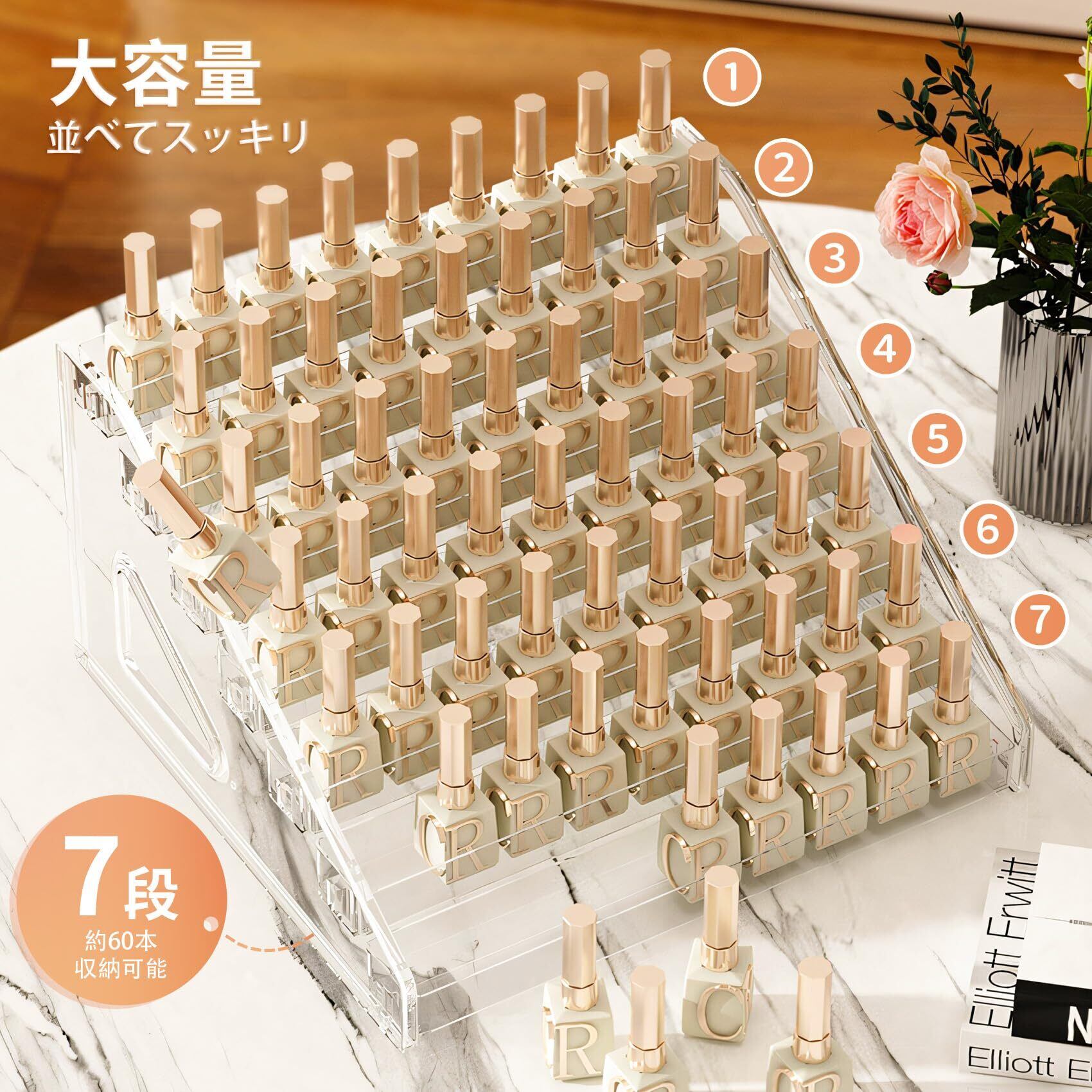 大容量:ネイルグッズを整理整頓し、楽しいセルフネイルをサポートするマニキュア収納ケースです。7つの階層になっている透明なアクリル製ディスプレイスタンドは、約60本ボトルをスッキリ収納できます。※ご購入の際は乗せる物のサイズをよく確認ください。お客様組み立て商品です。