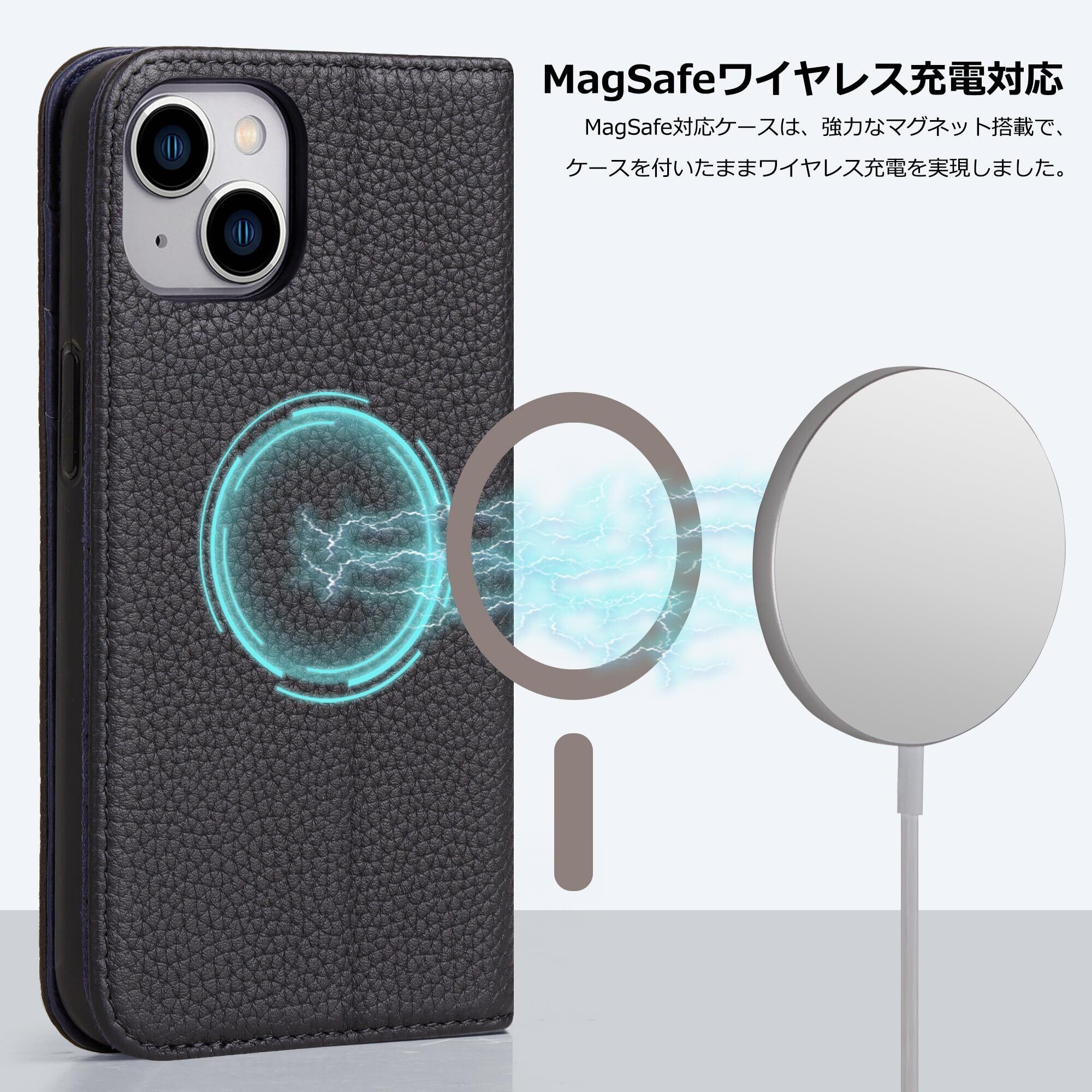 VISOUL iPhone15 Plus 対応 ケース 手帳型 本革アイフォン15プラスケース MagSafe対応 レザー カード収納 携帯カバー 全面保護 マグネット式 柔軟なTPU素材 スタンド機能付き スマホケース 6.7インチ アイホン 15 Plus ネイビー
