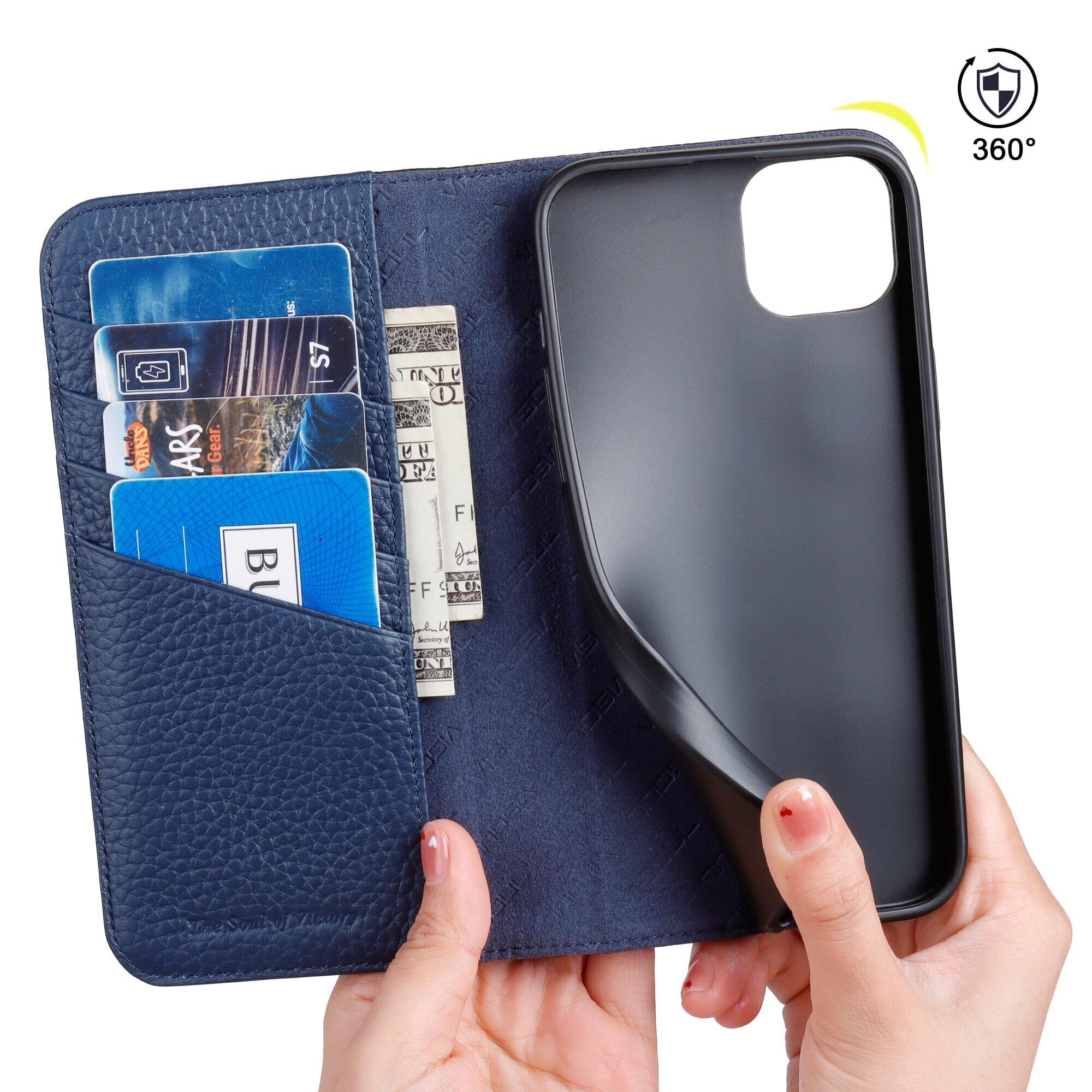 【在庫処分】VISOUL iPhone15 Plus 対応 ケース 手帳型 本革アイフォン15プラスケース MagSafe対応 レザー カード収納 携帯カバー 全面保護 マグネット式 柔軟なTPU素材 スタンド機能付き スマホケース 6.7インチ アイホン 15 Plus ネイビー | allstore3