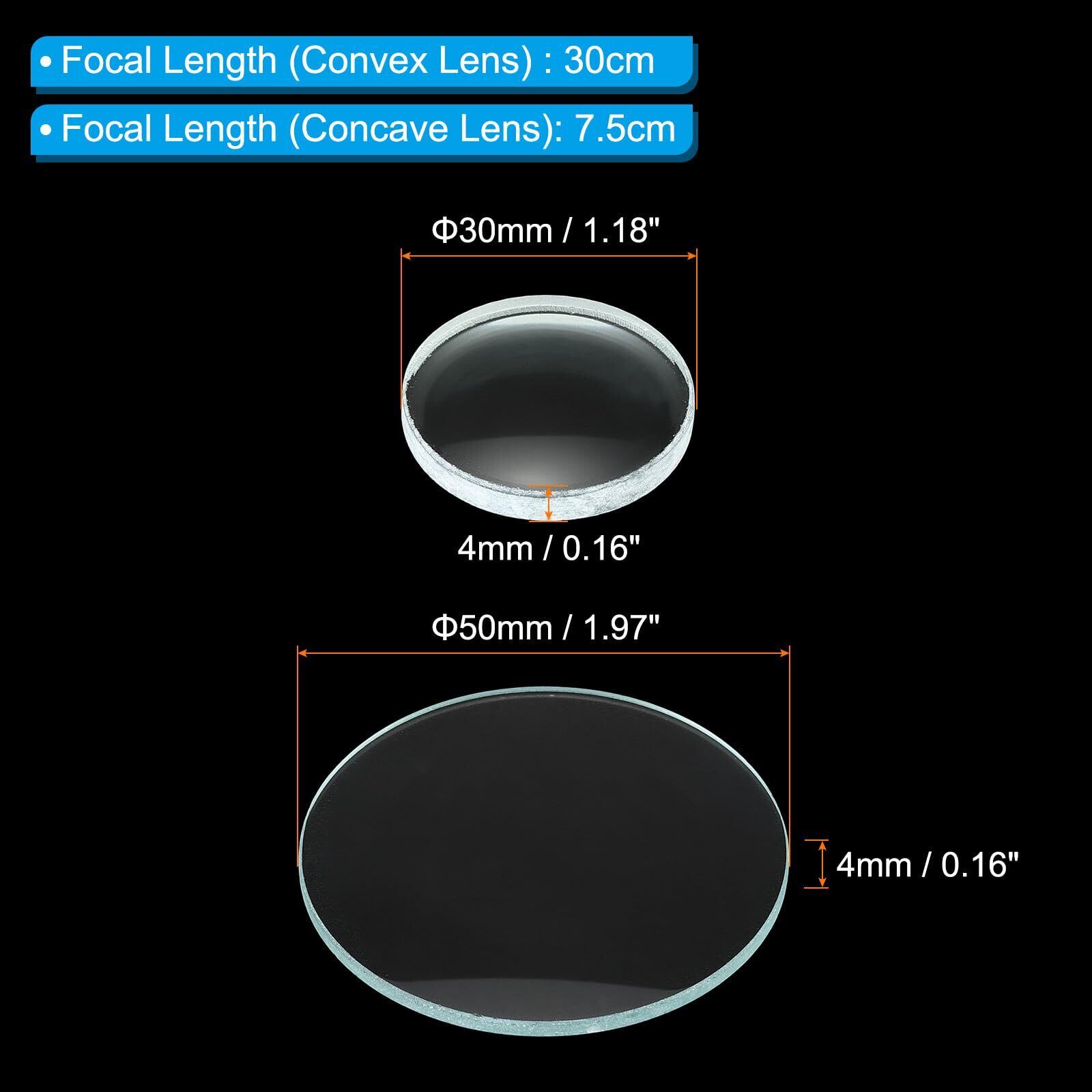 【新春セール】PATIKIL 30cm焦点距離50mm凸レンズと7.5cm焦点距離30mm凹レンズ1セット 物理教育用に最適な2パック ガラス光学研磨された丸いエッジ レンズ クリア
