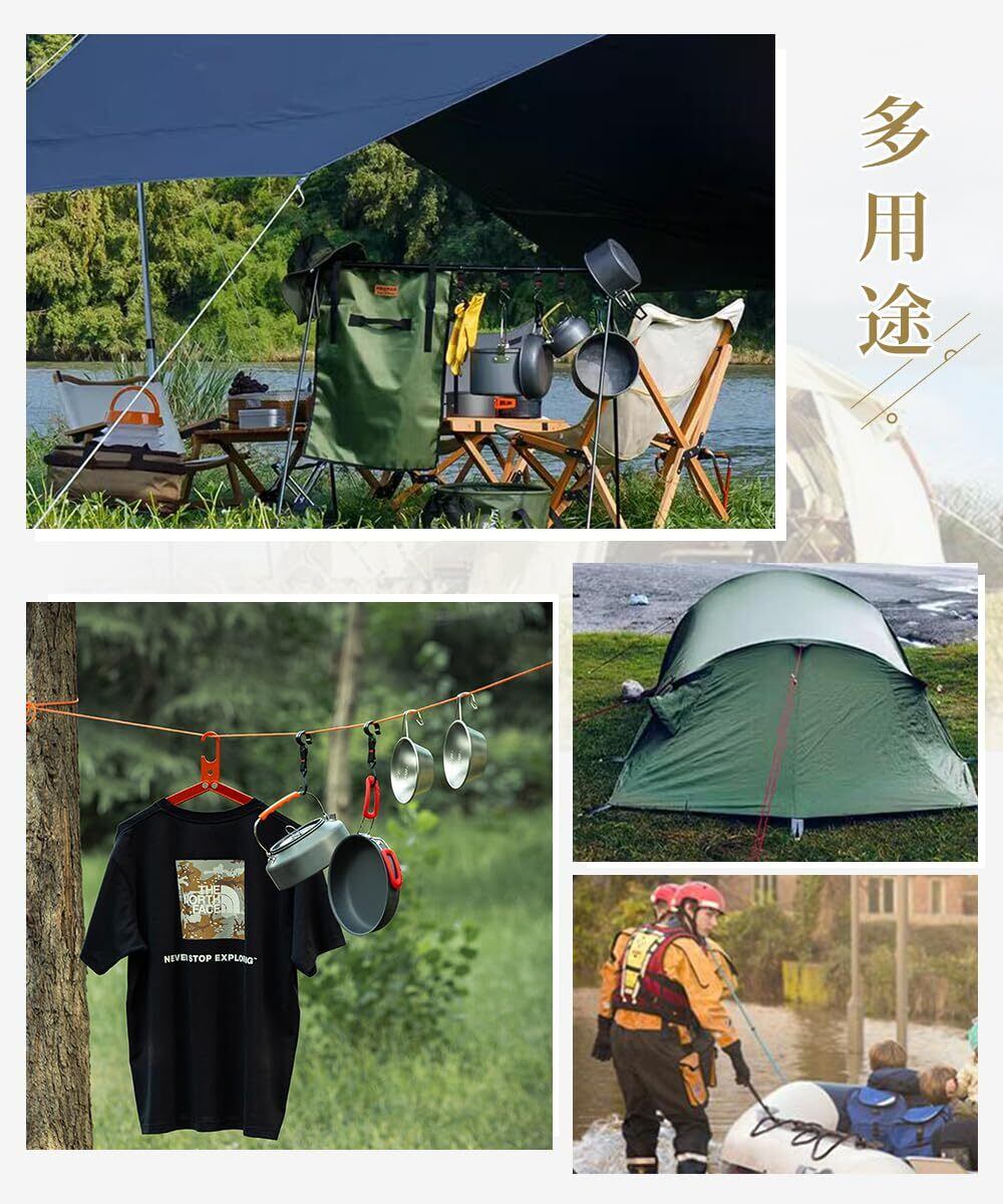 5.多用途:キャンプだけでなく、アウトドアとレジャー以外でも何かと使えるロープで、たとえばジッパープルコード、キャリーバッグプルコード、ハンモックロープ、テントロープ、衣服ライン、ギア用の交換コードなど。