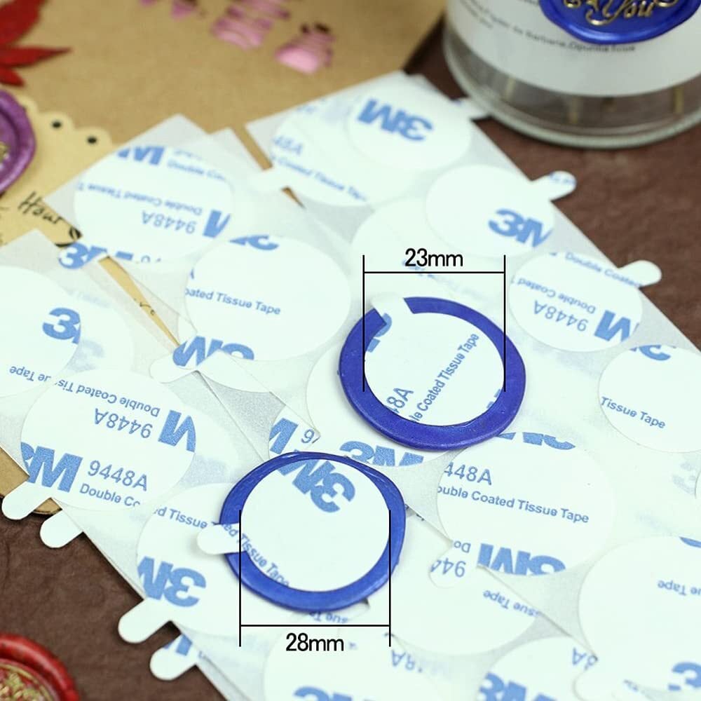 シーリングスタンプ用両面テープ 直径23mm/25mm/28mm 両面シール 120枚入り シーリングワックス スタンプ 用 丸型 粘着 シール テープ はがせる 耳つき DIY (23mm 120枚)