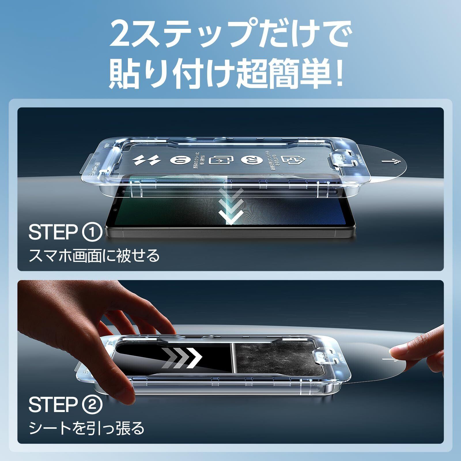 画期的なフィルム貼り付けデザイン!初心者でも秒で簡単に貼り付け!SGS米軍MIL規格、全面保護、耐衝撃性、究極の滑らかな高感度タッチ、防指紋、気泡レス、硬度9H越え、抜群な透明感、2.5Dラージアークエッジデ…