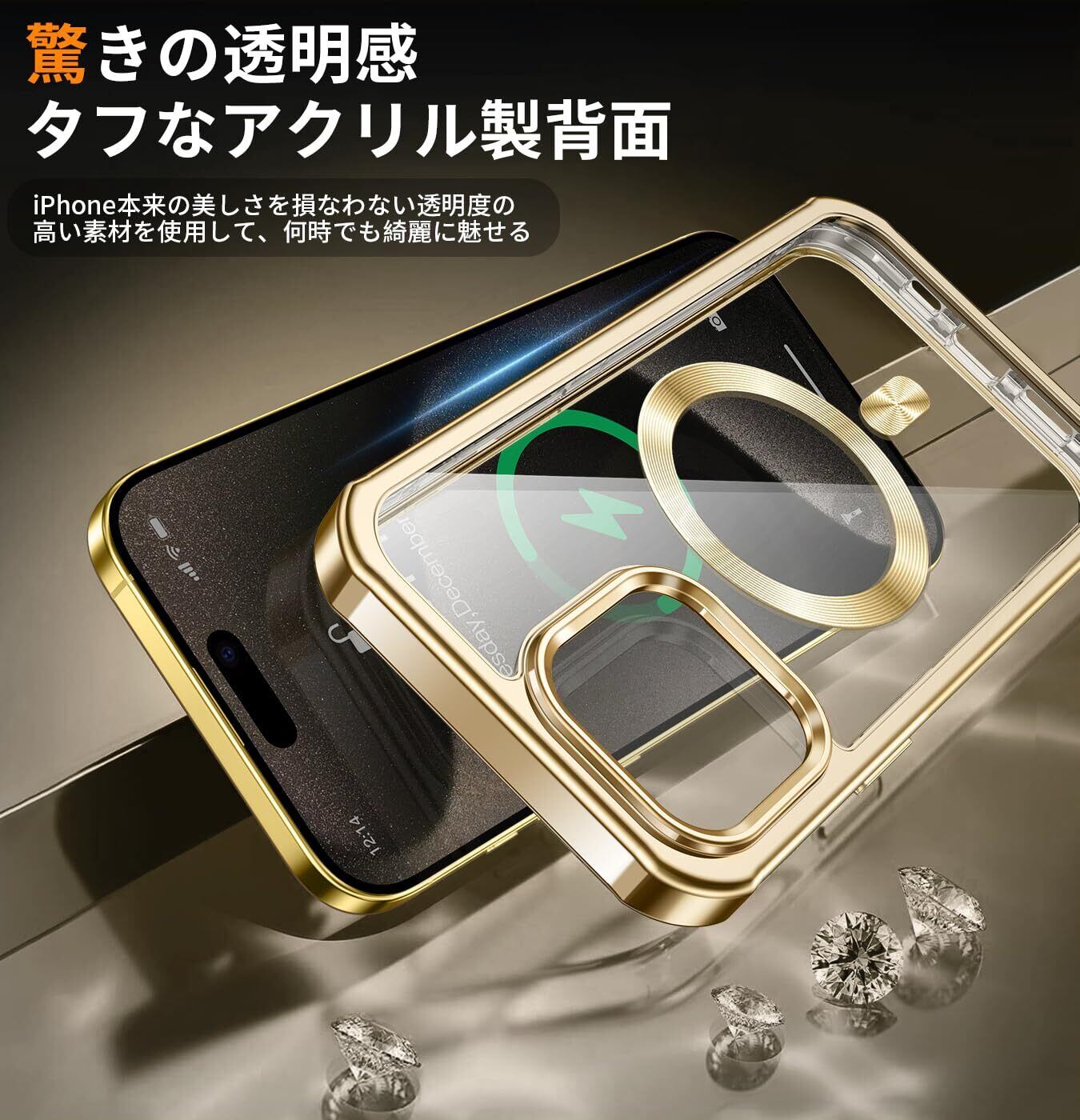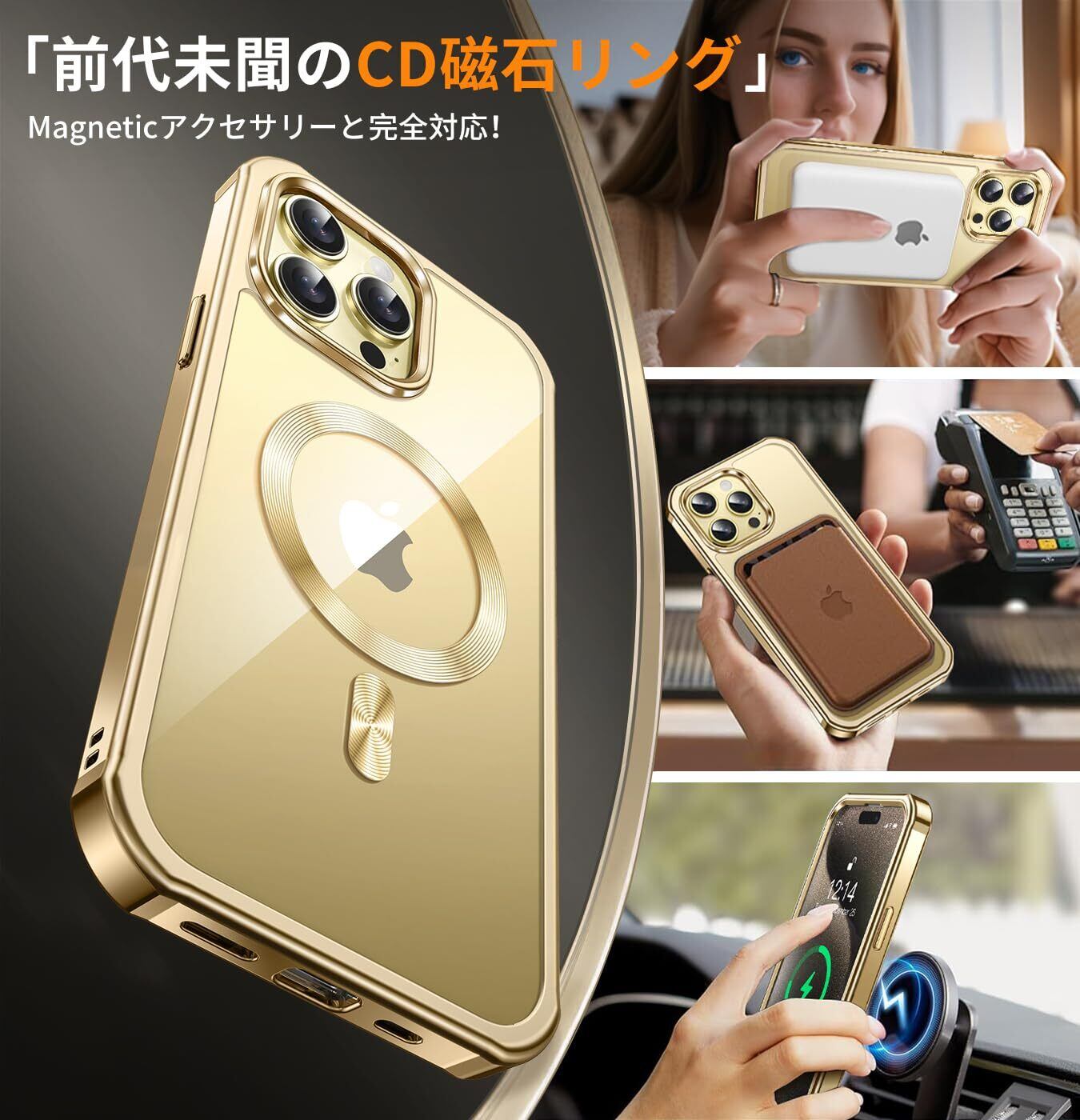【在庫セール】【両面保護ケース・MagSafe対応】FONKCASE iPhone15 Pro Max 用 ケース ストラップホール付き【本体の色・CDリング】メッキバンパーケース クリア PC背面 黄変防止 アイホン15プロマックスケース 全面保護 カバー 耐衝撃 タッチ感度良い ワイヤレス充電対応 人気 アイフォン15 Pro Max 用 ケース 6.7インチ(ゴールド) | allstore3