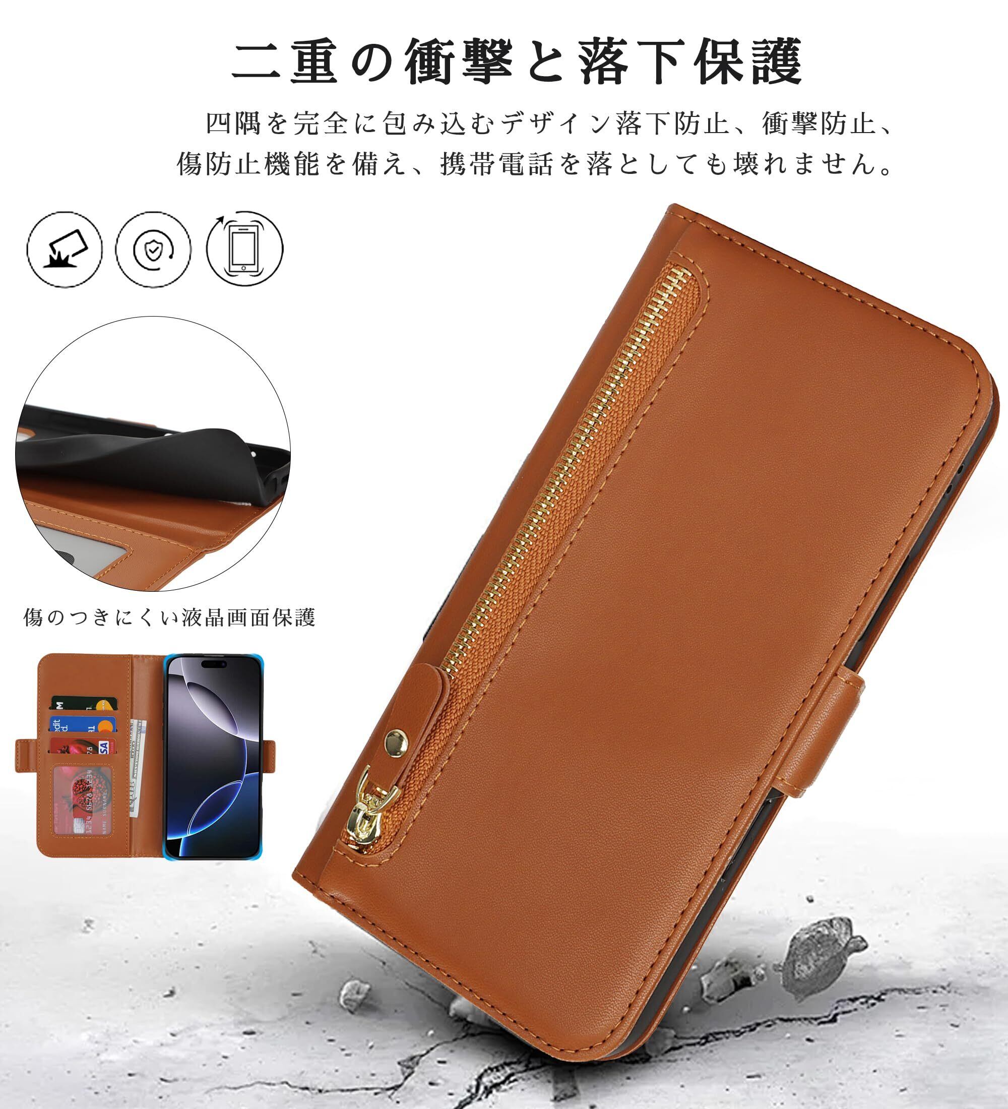 【多機能収納設計、実用的で便利】:携帯電話ケースショルダーには、ジッパー式小銭入れ、テラー式カードホルダー、複数のカードスロットに加え、マグネット式開閉とスナップ式開閉が内蔵されており、銀行カード、交通カード、ICカード、名刺、月パス、小銭などを安全に収納することができます。 大容量のデザインは、余分な財布を持ち歩くことなく、保護ケースだけで毎日のニーズを満たすことができます。