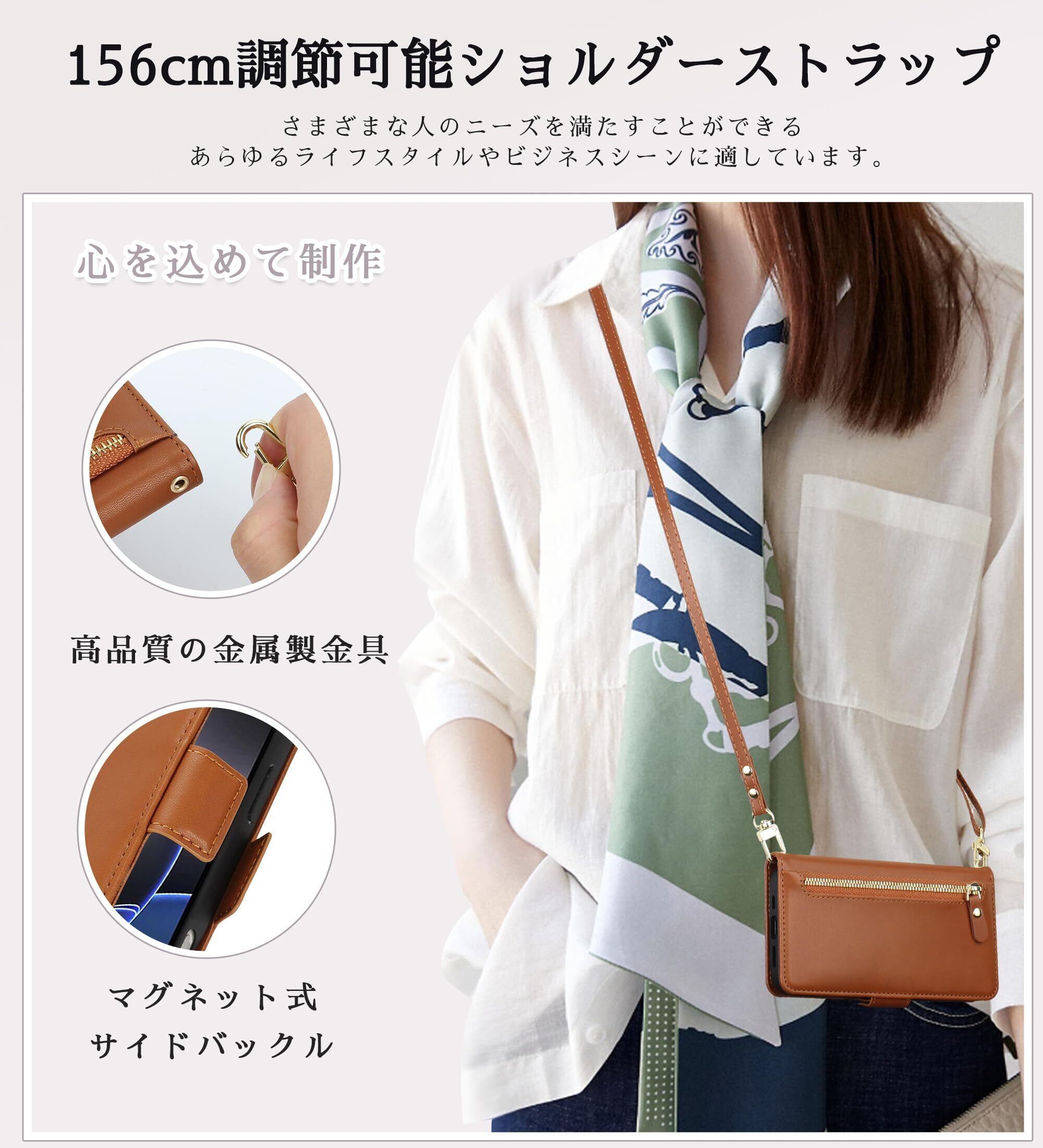 【ファッショナブルなデザイン、多用途】:調節可能なショルダーストラップデザインにより、ケースを肩や首に掛けることができ、ファッショナブルで実用的です。 犬の散歩中、買い物中、荷物が多い時でも、簡単に携帯電話を使用することができます。 また、ケースには横置きスタンド機能が付いており、動画視聴や読書などのシーンに適しており、より快適な使用体験を提供します。